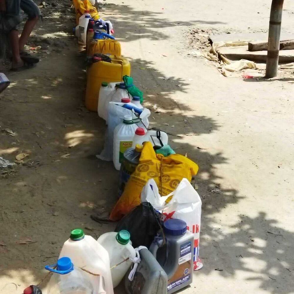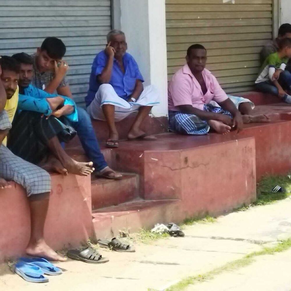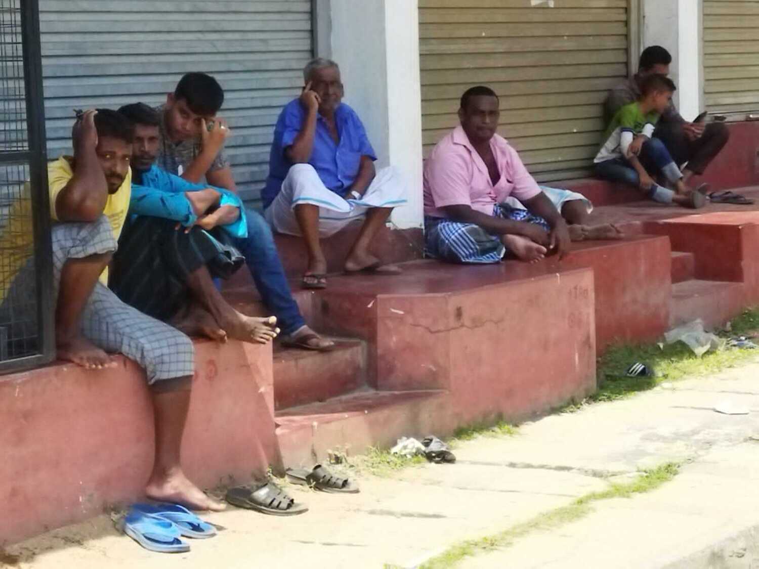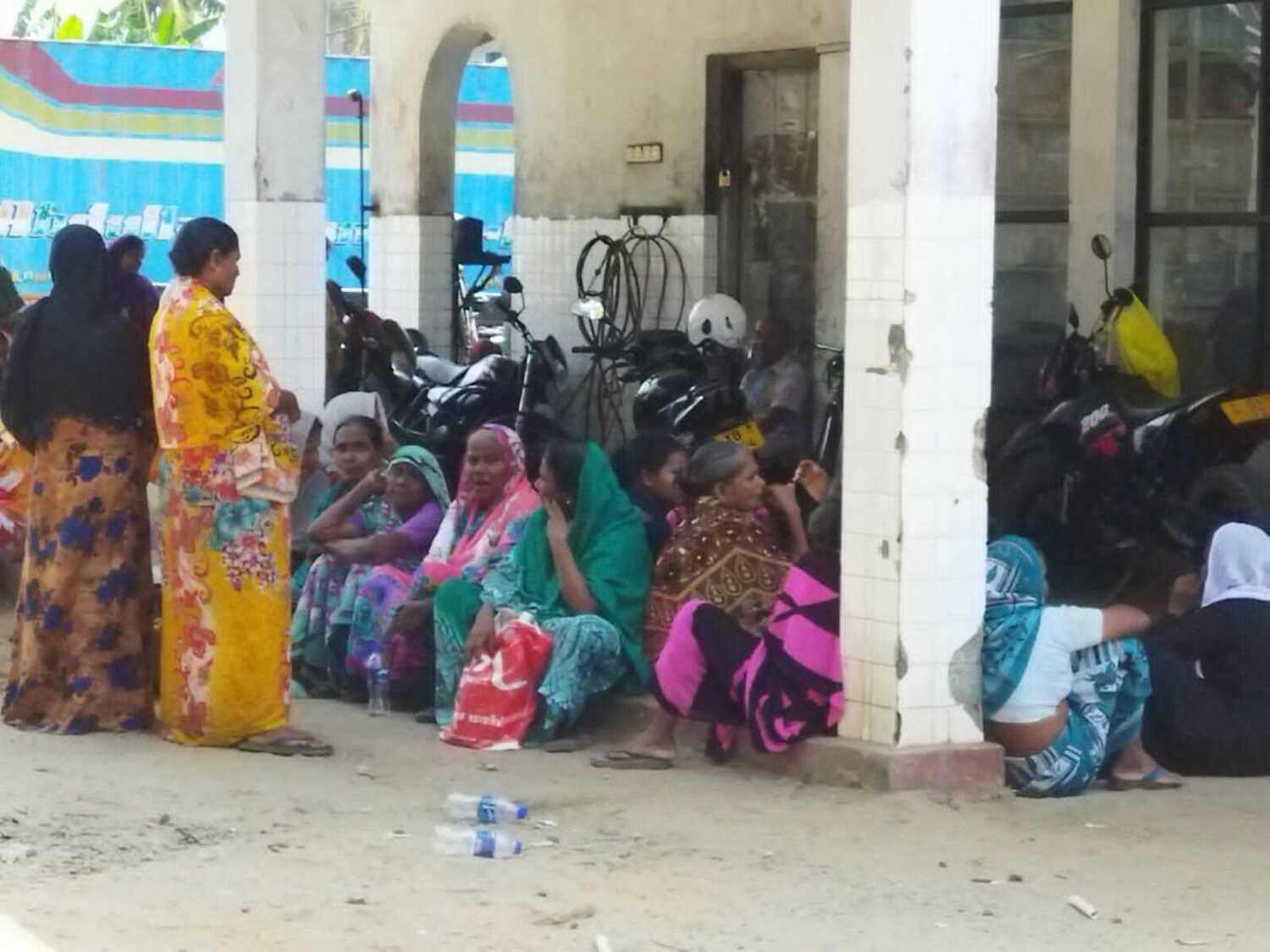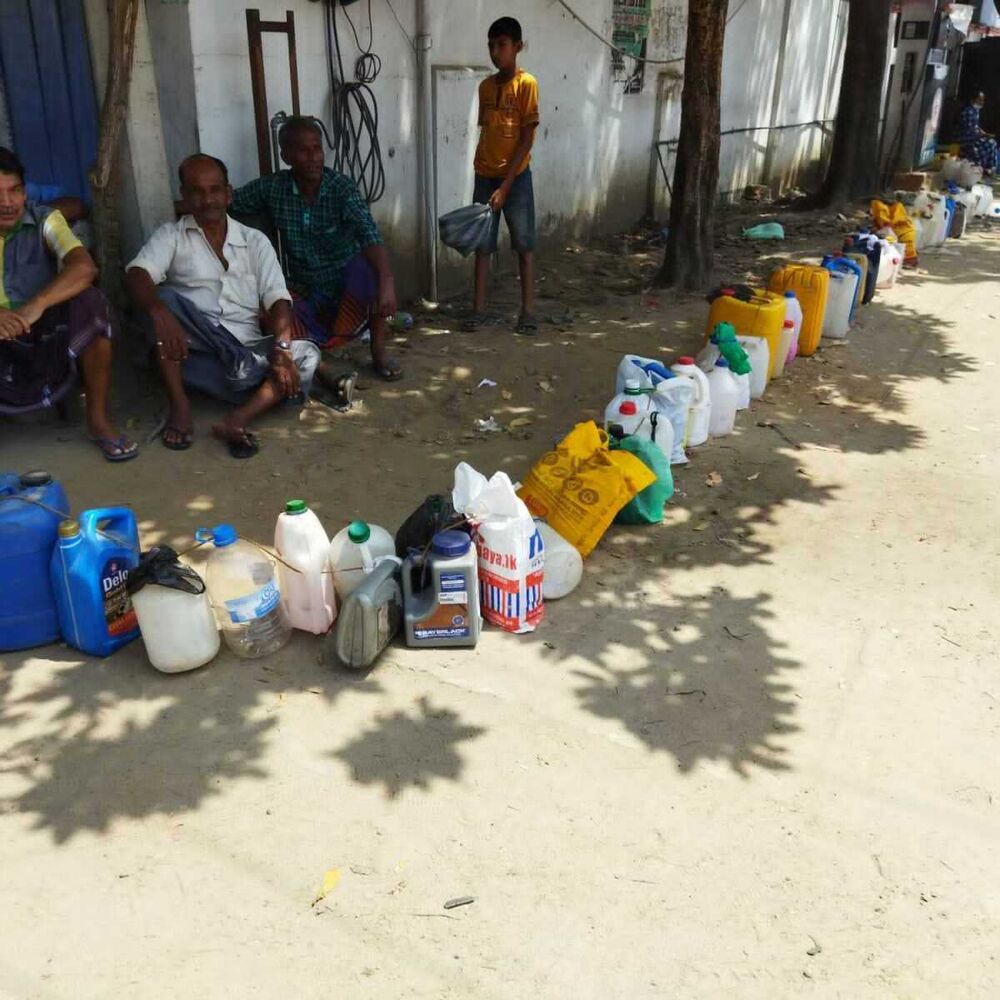 மண்ணெண்னை பெறுவதற்கான கலன்களை கியூ வரிசையில் அடுக்கிவிட்டு அருகிலுள்ள நிழல் தரும் இடங்களில் மக்கள் கூட்டங் கூட்டமாக அமர்ந்திருந்ததையும் காணக்கூடியதாக இருந்தது.