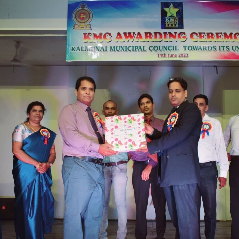 அத்துடன், கல்முனை மாநகர சபையை பொறுப்பேற்று குறுகிய காலத்தினுள் நிர்வாக சீர்திருத்தங்களை மேற்கொண்டு, மாநகர சபையை வினைத்திறன் மிக்க நிறுவனமாக மாற்றியமைத்தமைக்காக மாநகர ஆணையாளர் ஏ.எல்.எம். அஸ்மி அவர்கள், 'ஆளுமைக்கான அடையாளம்' என்று மகுடம் சூட்டப்பட்டு, ஊழியர் சமூகத்தின் சார்பில் பொன்னாடை போர்த்தி கெளரவிக்கப்பட்டார்.