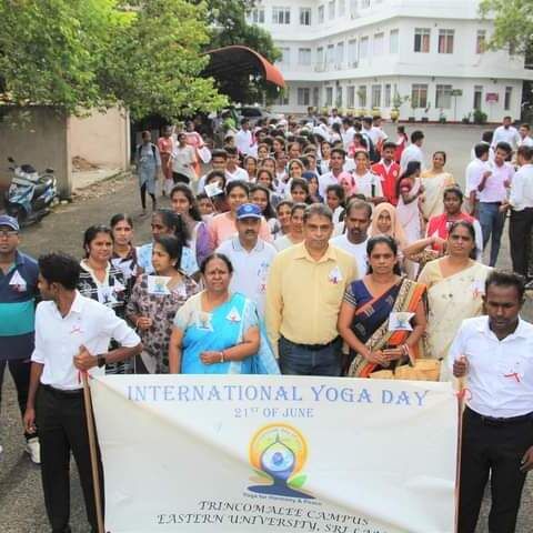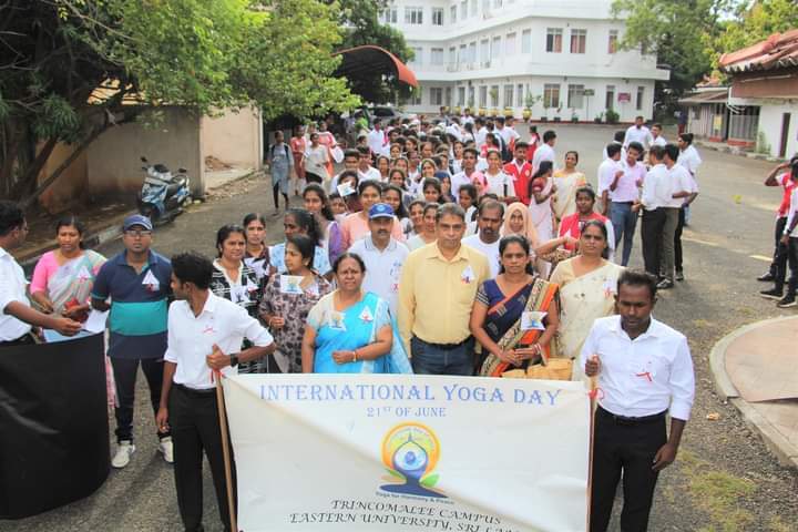 சர்வதேச யோகா தினத்தையொட்டி Vanni Hope Australia நிறுவனத்தின் நிதி உதவியில் Trinco Aid நிறுவனத்தோடு இணைந்து திருமலை வளாக கிழக்கு பல்கலைக்கழக சித்த மருத்துவபீடம் ஏற்பாடு செய்த யோகா தொடர்பான விழிப்புணர்வு நடைபவனி இன்று (21) புதன் நடைபெற்றது.