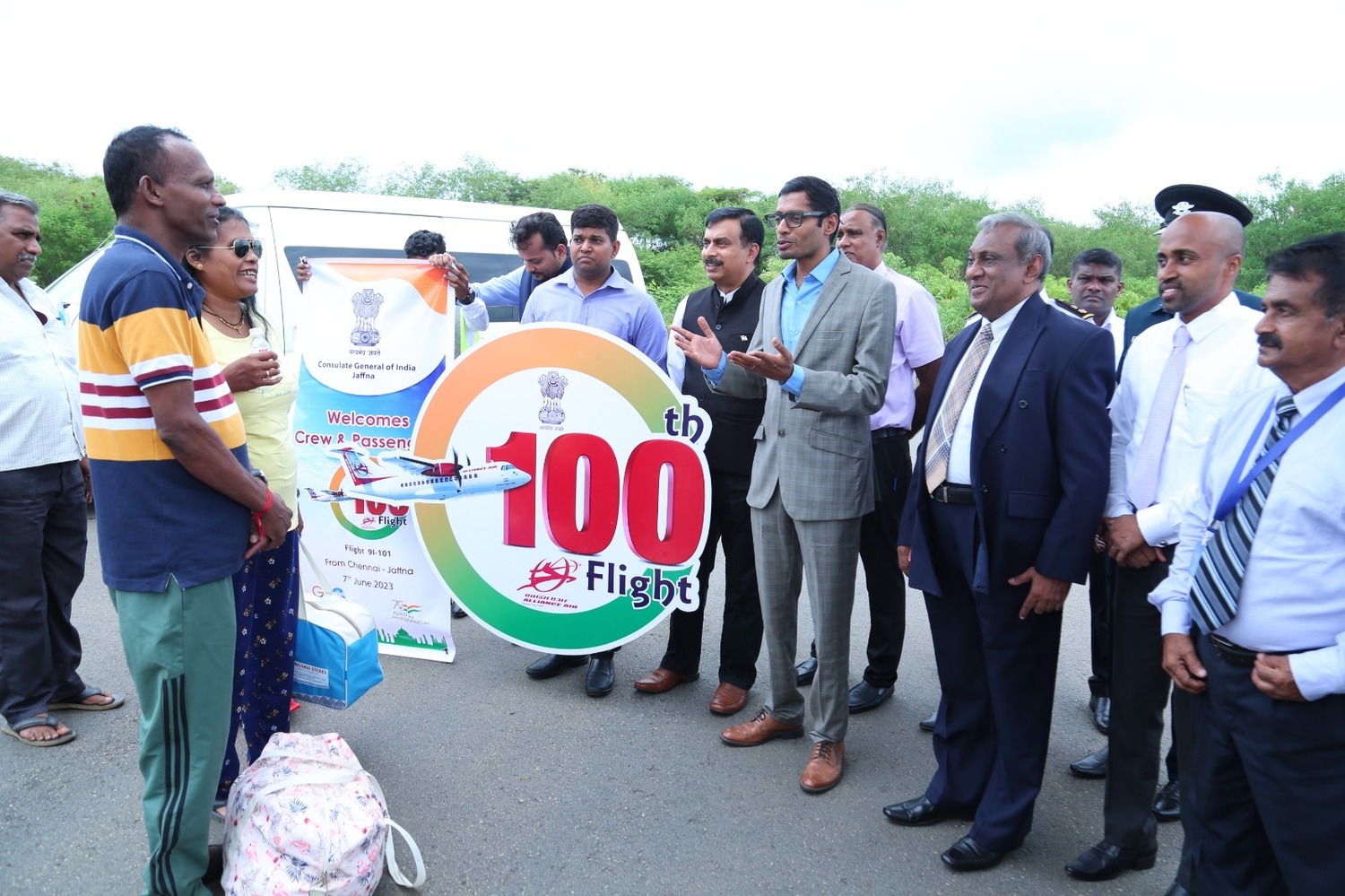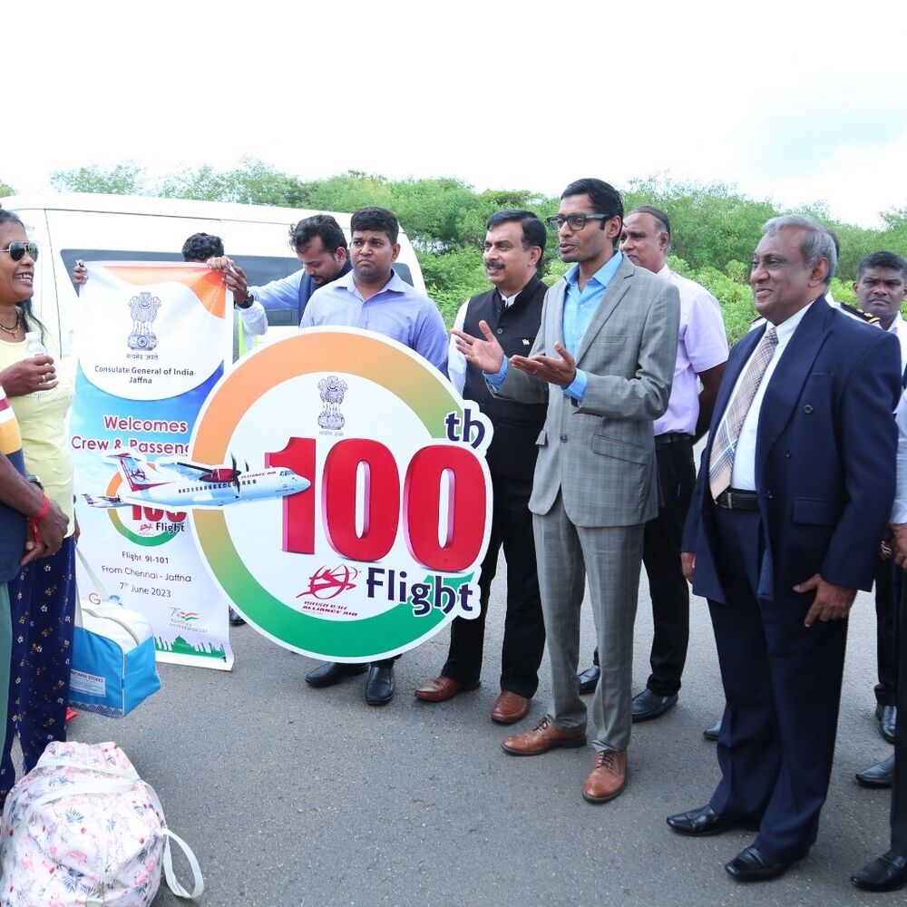 07.06.2023அன்று சென்னை மற்றும் யாழ்ப்பாணம் இடையே அலையன்ஸ் ஏர் மூலம் இயக்கப்படும் 100வது விமானச் சேவையைக் குறிக்கிறது.