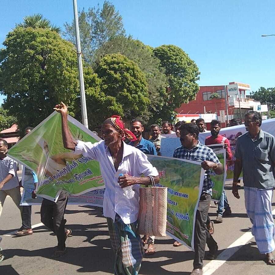 நெல் சந்தைப்படுத்தல் நிலையம் முன்பாக ஆர்ப்பாட்ட பேரணி ஆரம்பித்து கிளிநொச்சி மாவட்ட செயலகம் வரை சென்றடைந்து. அங்கு விவசாயிகள் தொடர்பில் மகஜர் கையளிக்கப்பட்டது.