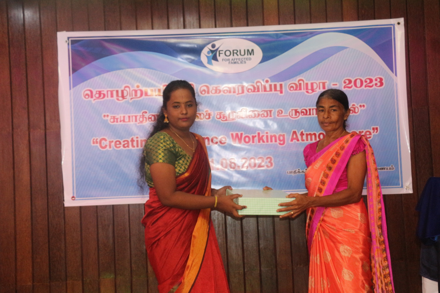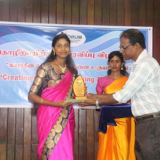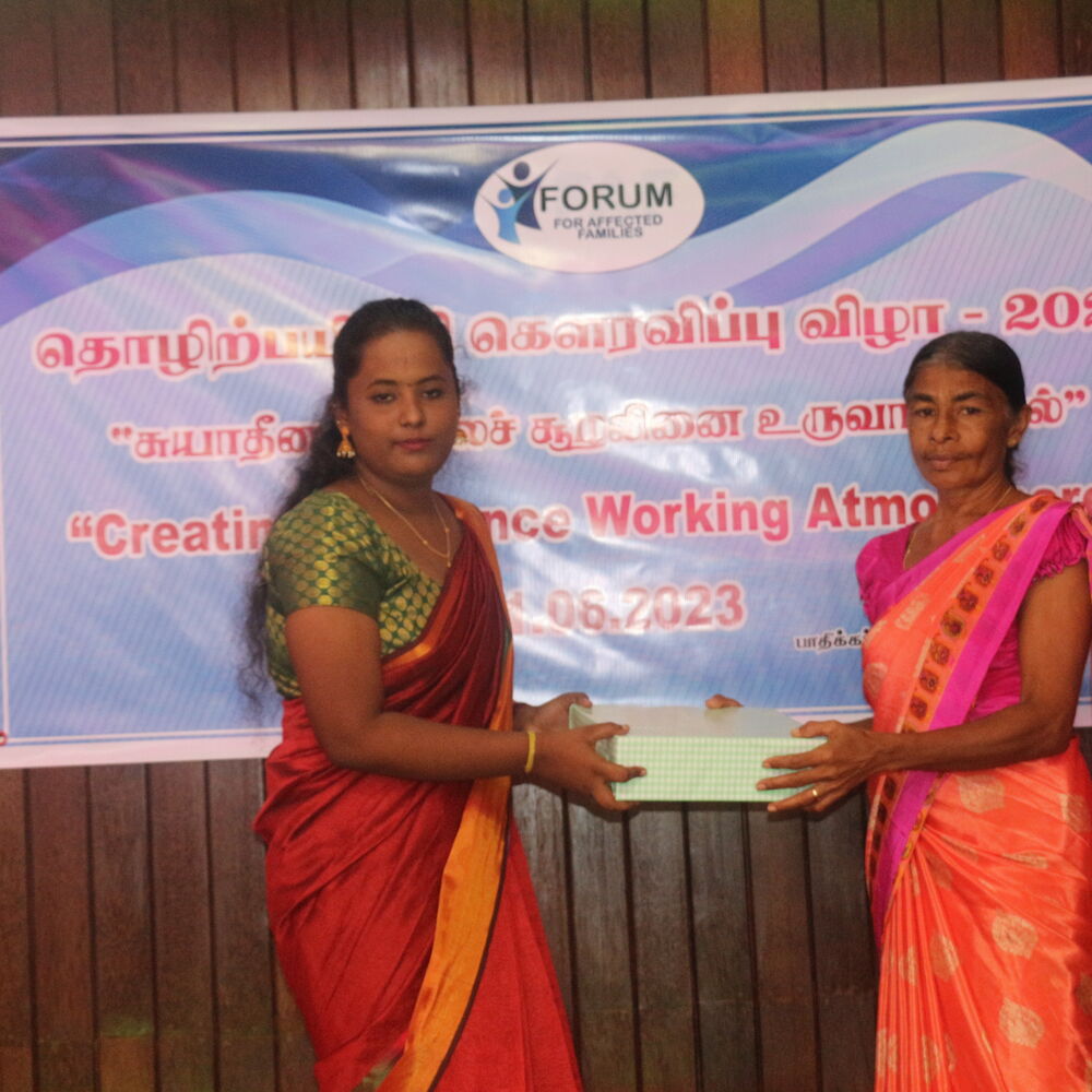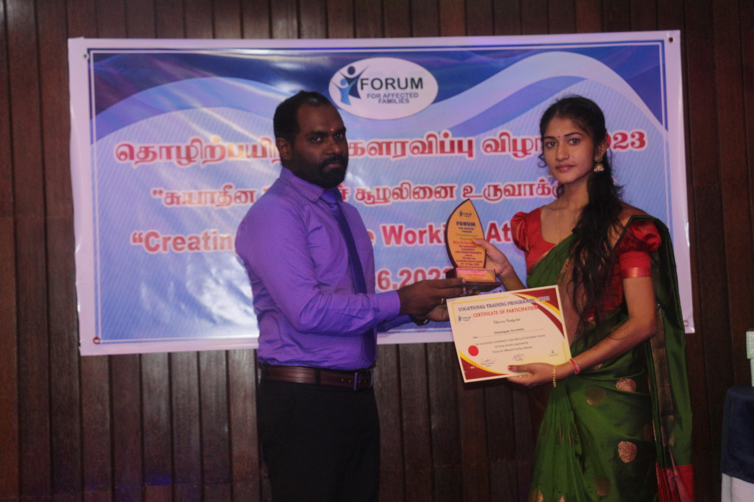 இந்த நிறுவனம் மனித உரிமை சார்ந்த செயலில் மட்டுமல்லாது தற்பொழுது பாதிக்கப்பட்ட குடும்பங்களுக்கு ஆறுதல் கொடுக்கும் ஒரு செயற்பாடாக தொழிற்பயிற்சி வழங்கி அவர்கள் வாழ்வாதாரத்தில் முன்னேற வழி சமைத்துக் கொடுக்கின்றது.