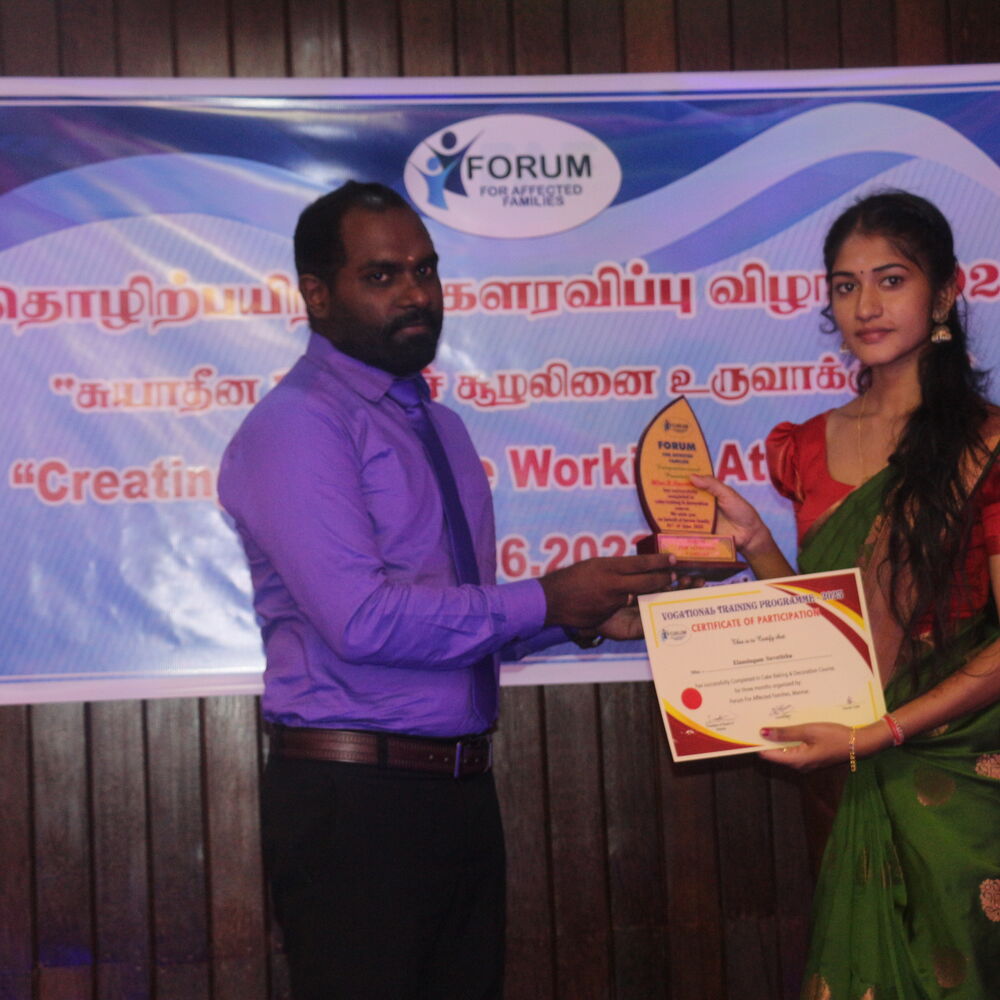 பாதிக்கப்பட்ட குடும்பங்களுக்கான இணைய நிறுவனத்தினால் (போறம்) முன்னெடுக்கப்பட்ட தொழிற்பயிற்சி கௌரவிப்பு விழா மன்னாரில் கொக்கஸ் கார்டன் ஹொட்டலில் வியாழக்கிழமை (01) காலை நடைபெற்றது.