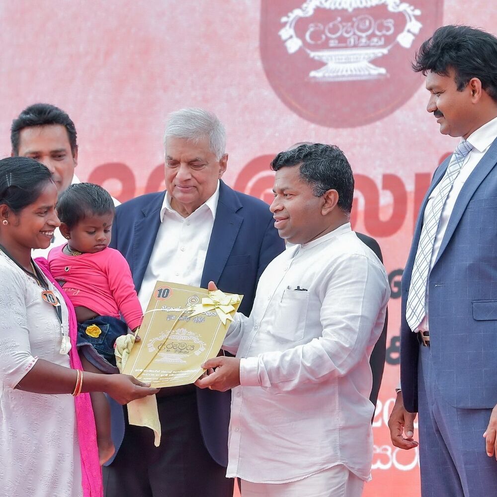 அதன்படி மக்களுக்கு முழு உரிமையுள்ள காணி உரிமை வழங்கும் உறுமய திட்டத்தை நடைமுறைப்படுத்தினோம். இப்போது உங்களுக்கு ஒரு நிலத்தின் சட்டபூர்வ உரிமை உள்ளது. யாரும் அடிபணிந்து வாழத் தேவையில்லை. குறைந்த வருமானம் பெறும் மக்களுக்கு “அஸ்வெசும” நிவாரணத் திட்டத்தை செயல்படுத்தினோம். தற்போது விவசாயிகளுக்கு காணி உரிமை வழங்கப்பட்டுள்ளது. இப்பகுதிக்கு 27 ஆயிரத்துக்கும் மேற்பட்ட காணி உறுதிப் பத்திரங்கள் வழங்கப்பட உள்ளன. இந்தக் காணி உறுதிப்பத்திரங்களை வினைத்திறனாக வழங்க சம்பந்தப்பட்ட அனைத்து அரசாங்க அதிகாரிகளையும் கிராமங்களுக்கு அனுப்புவதற்கான வேலைத்திட்டத்தையும் நாங்கள் தயாரித்துள்ளோம்.