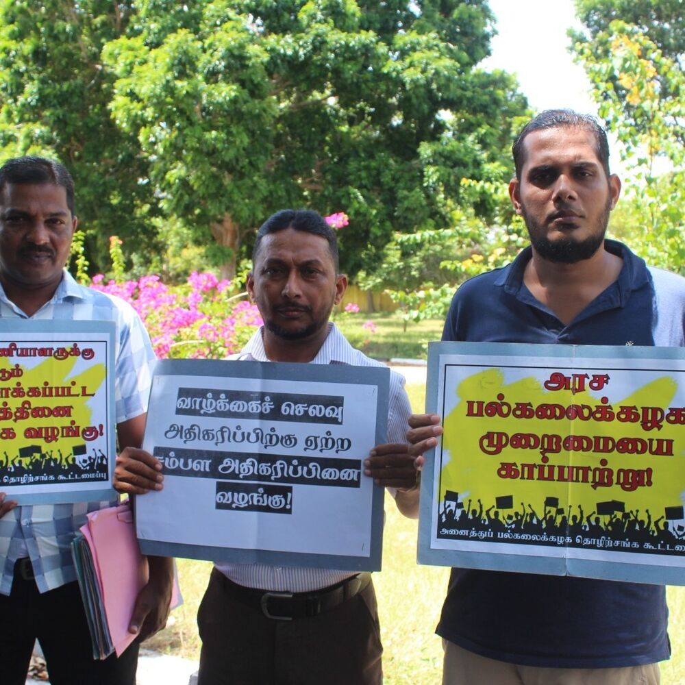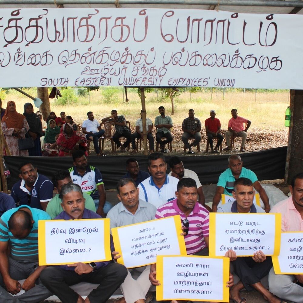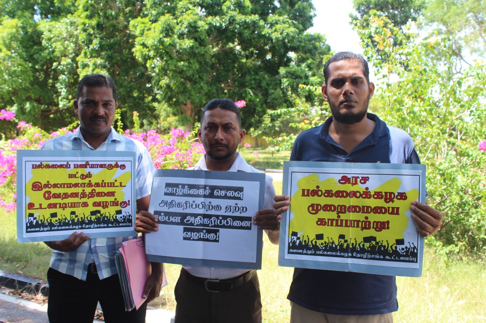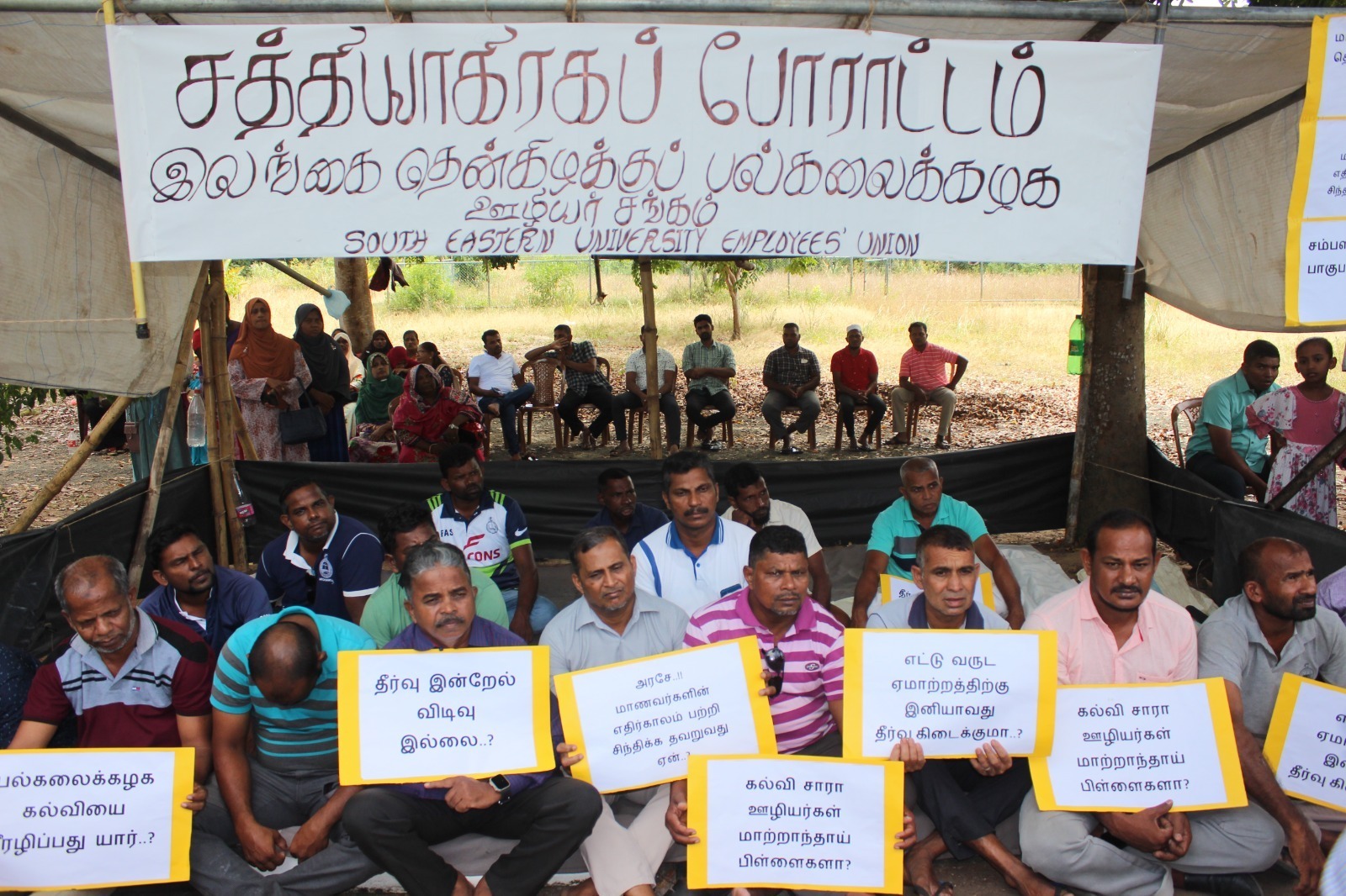 கடந்த 58 நாட்களாக இலங்கையில் உள்ள அனைத்து பல்கலைக் கழகங்களினதும் கல்விசாரா ஊழியர்கள் தாங்களது பல்வேறு கோரிக்கைகளை முன்வைத்து போராடி வருகின்றனர். அவர்களது போராட்டம் உக்கிர கட்டத்தை அடைந்துள்ள நிலையில் சுழற்சி முறை உண்ணாவிரத போராட்டம், சத்யாகிரக போராட்டம் என நாளுக்குநாள் வீரியம் அடைந்து செல்கின்றன.