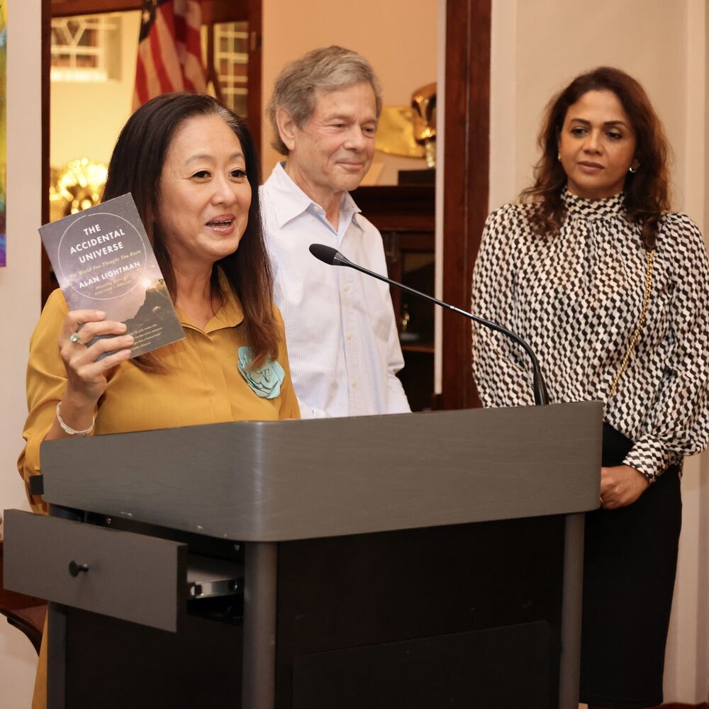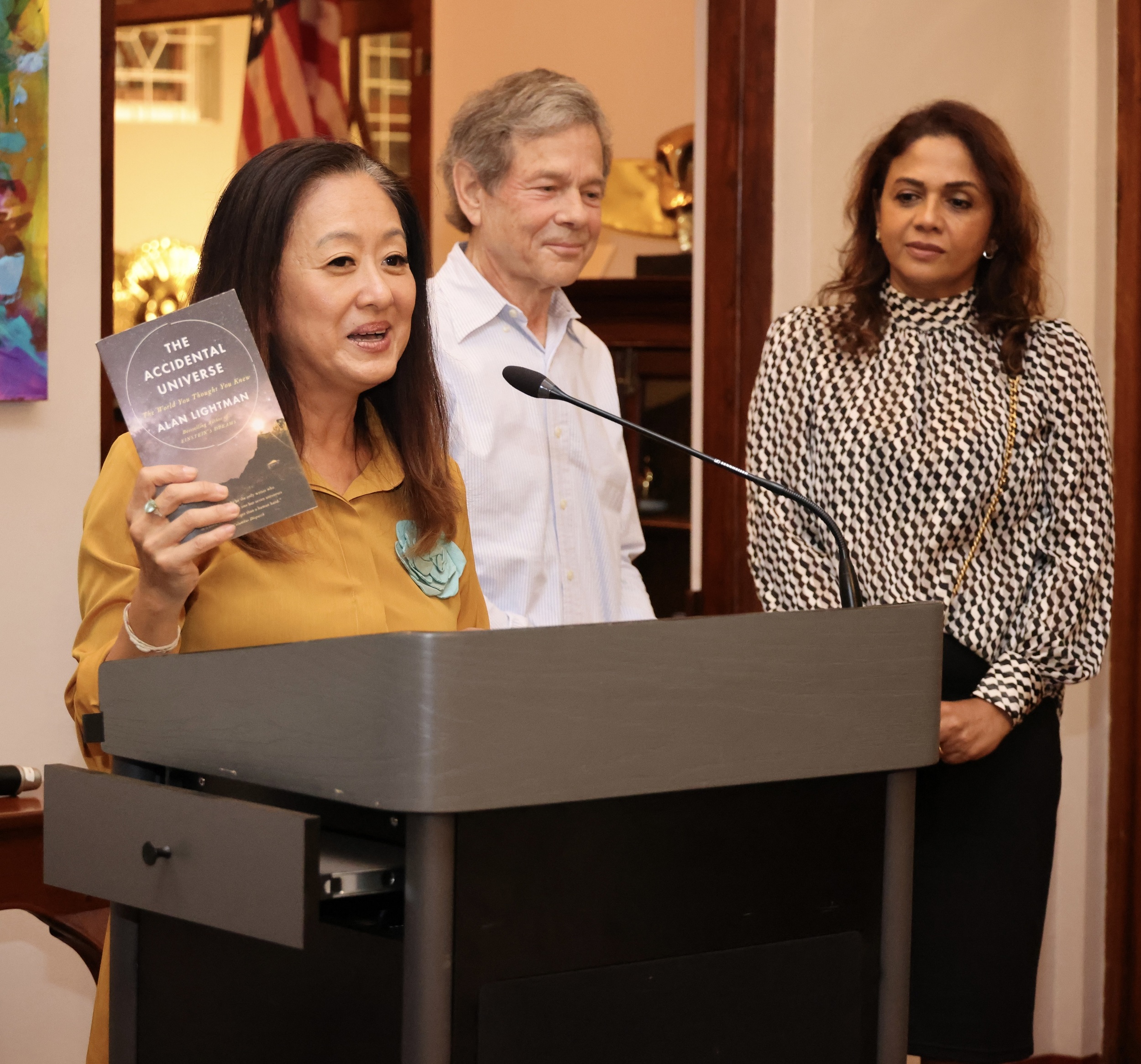 கலாநிதி லைட்மனை இலங்கைக்கு வரவேற்ற, இலங்கைக்கான அமெரிக்கத் தூதுவர் ஜுலீ சங் “ஒரு புகழ்பெற்ற கோட்பாட்டு பௌதீகவியலாளராகவும் மற்றும் ஒரு நாவலாசிரியராகவும், கலை, மானுடவியல் மற்றும் விஞ்ஞானம் ஆகியவற்றிற்கிடையேயான இடைவெளியை கலாநிதி அலன் லைட்மன் குறைக்கிறார். படைப்பு மற்றும் விஞ்ஞான செயன்முறைகள், உள்ளுணர்வு மற்றும் கற்பனையின் பங்கு, ஐன்ஸ்டீனின் பணி, விஞ்ஞானத்திற்கும் நம்பிக்கைக்கும் இடையிலான சந்திப்பு, மற்றும் மனித இயல்பின் அதிசயம் மற்றும் பலவீனம், உயிருடன் இருப்பதென்றால் என்ன – என்பன போன்ற விடயங்களில் அவரது விரிவுரைகள் எம் அனைவருக்குள்ளேயும் இருக்கின்ற சிந்தனைகளுடன் ஆழமாக எதிரொலிக்கின்றன. கலாநிதி லைட்மன் போன்ற தொலைநோக்கு பார்வையுடைய அமெரிக்கர்களை பார்வையாளர்களுடன் ஈடுபடுத்துவதற்கும், எமது நாடுகளுக்கிடையேயான உறவுகளை வலுப்படுத்துவதற்கும், பரஸ்பர புரிதலை வளர்ப்பதற்குமான இந்நிகழ்வினை எமது அமெரிக்க மையத்தில் நடத்துவதில் நாம் பெருமையடைகிறோம்” எனத் தெரிவித்தார்.