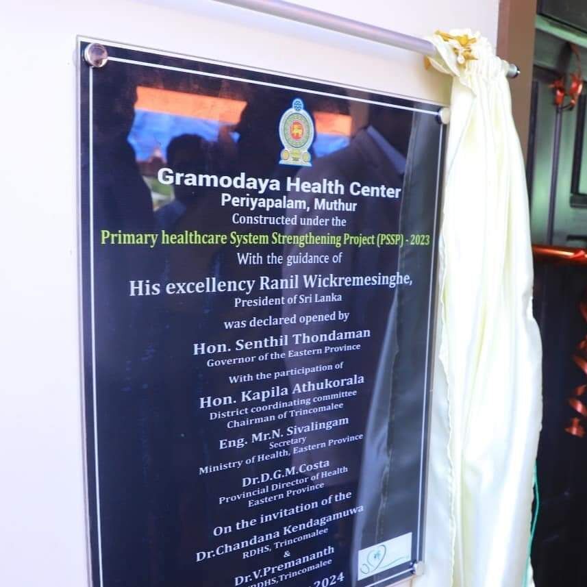 மூதூர் பெரியபாலத்தில் 16 மில்லியன் ரூபா செலவில் நிர்மாணிக்கப்பட்ட கிராமோதய சுகாதார நிலையத்தை கிழக்கு மாகாண ஆளுநர் செந்தில் தொண்டமான் திறந்து வைத்ததுடன், மக்கள் பாவனைக்காக கையளித்தார்.