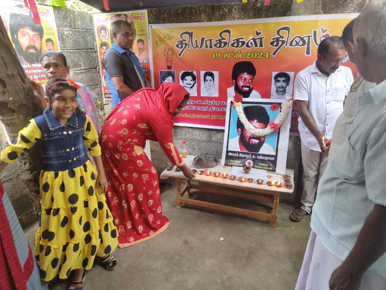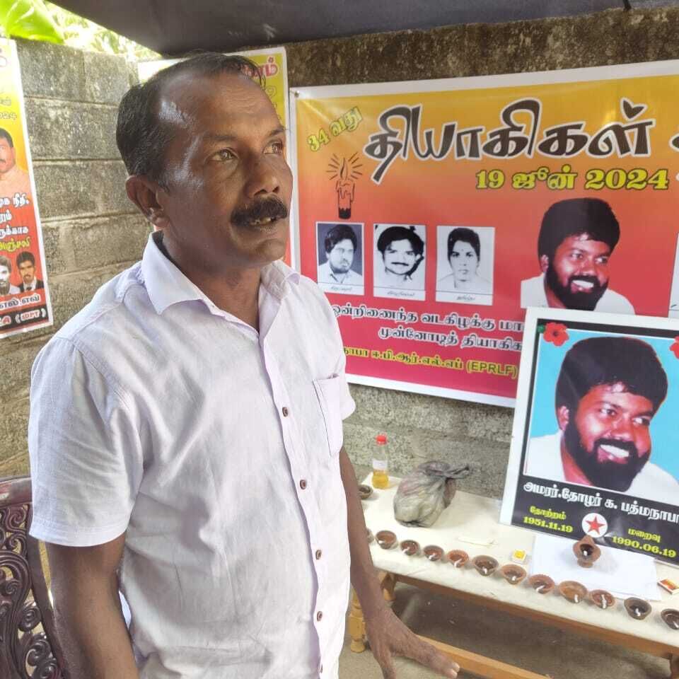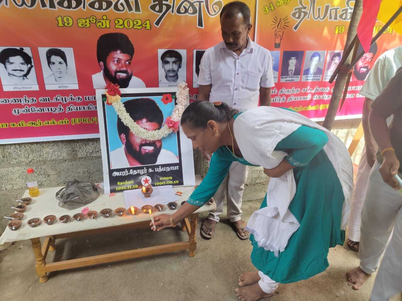 தமிழர் சமூக ஜனநாயக்கட்சியின் (பத்மநாபா - ஈ.பி.ஆர்.எல்.எப்) அனுசரணையுடன், பாண்டிருப்பு 2ஏ அன்பு வழிபுரத்திலுள்ள கட்சியின் மாவட்ட தலைமை அலுவலக மண்படத்தில் சிறப்பாக நடைபெற்ற 34ஆவது தியாகிகள் தின நிகழ்விற்குத் தலைமை தாங்கி உரையாற்றுகையிலேயே அவர் மேற்கண்டவாறு கூறினார்.