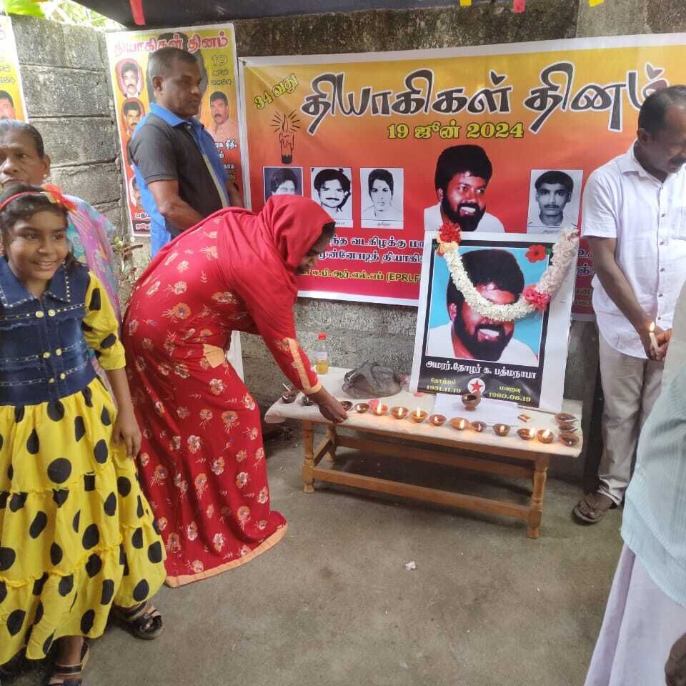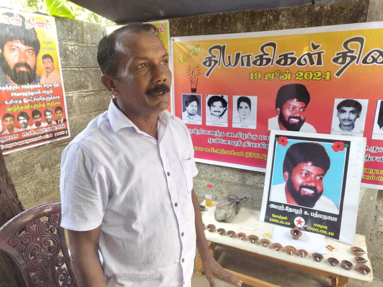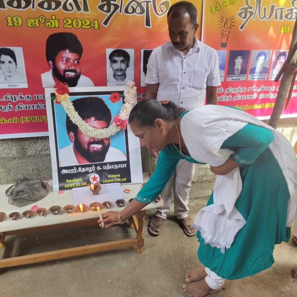 தமிழர் சமூக ஜனநாயக்கட்சியின் (பத்மநாபா - ஈ.பி.ஆர்.எல்.எப்) அனுசரணையுடன், பாண்டிருப்பு 2ஏ அன்பு வழிபுரத்திலுள்ள கட்சியின் மாவட்ட தலைமை அலுவலக மண்படத்தில் சிறப்பாக நடைபெற்ற 34ஆவது தியாகிகள் தின நிகழ்விற்குத் தலைமை தாங்கி உரையாற்றுகையிலேயே அவர் மேற்கண்டவாறு கூறினார்.