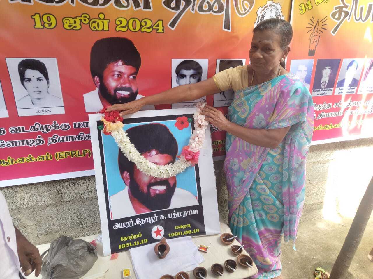 நிகழ்வின் ஆரம்பத்தில் தியாகி தோழர் கமலநாதனின் (கண்ணன்) சகோதரி டேவிட் ஈஸ்வரி தோழர் பத்ம நாபாவின் உருவப்படத்திற்கு மலர் மாலை அணிவித்து அஞ்சலி செலுத்தியதுடன் மறைந்த தோழர்களுக்கு தியாகச் சுடரேற்றி இரு நிமிடமௌன அஞ்சலியும் செலுத்தப்பட்டது.