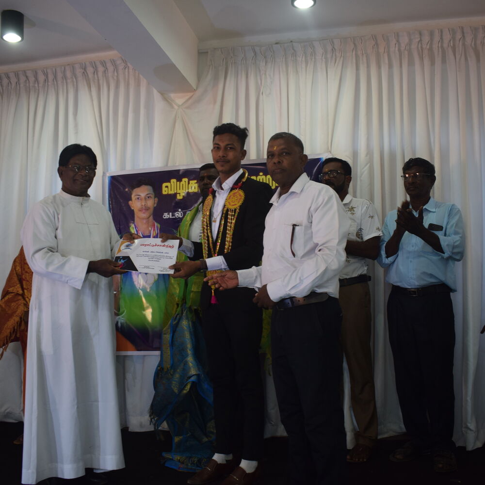 பூ பந்தாட்ட உள்ளக அரங்கு விளையாட்டுப் போட்டிகளில் மாவட்ட ரீதியில் மாகாண ரீதியில் தேசிய ரீதியில் இருபது வயதுக்கு உட்பட்ட வீரர்களுக்கான போட்டிகளில் முதல் இடங்களைப் பெற்று பின் 17.11.2021 தொடக்கம் 26.11.2021 வரை கடல் கடந்து துபாய் நாட்டு விளையாட்டரங்கில் நாடுகளின் வீரர்களுடன் களமாடி முதல் இடத்தை வென்றெடுத்த மன்னார் மாவட்டத்தின் பேசாலை கிராமத்தைச் சேர்ந்தவரும் மன்.பற்றிமா தேசிய பாடசாலை மாணவனுமாகிய செல்வன் ததேயு சில்வியன் டலிமாவுக்கு கௌரவிப்பு விழா இடம்பெற்றது.