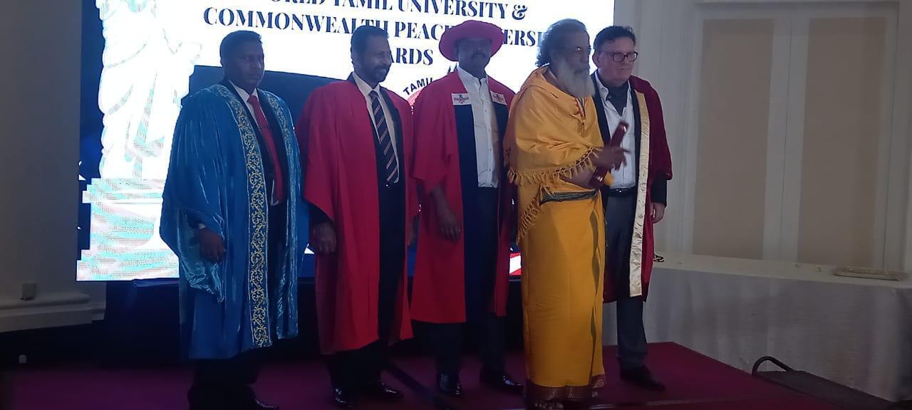 சந்நிதியான் ஆச்சிரம முதல்வர் தவத்திரு மோகனதாஸ் சுவாமிகள் அவர்களுக்கு ஆச்சிரமத்தால் மேற்கொள்ளப்படும் சமூதாயப் பணிகளை பாராட்டி இன்று (26.3.2022) கொழும்பிலுள்ள தாஜ் சமுத்ரா ஹோட்டலில் அமெரிக்காவின் உலகத்தமிழ் பல்கலைக்கழகத்தினால் நடத்தப்பட்ட பட்டம் வழங்கும் விழாவில் சமூகசேவைக்கான வாழ்நாள் சேவையாளர் விருது வழங்கி கௌரவிக்கப்பட்டார்.