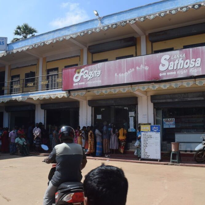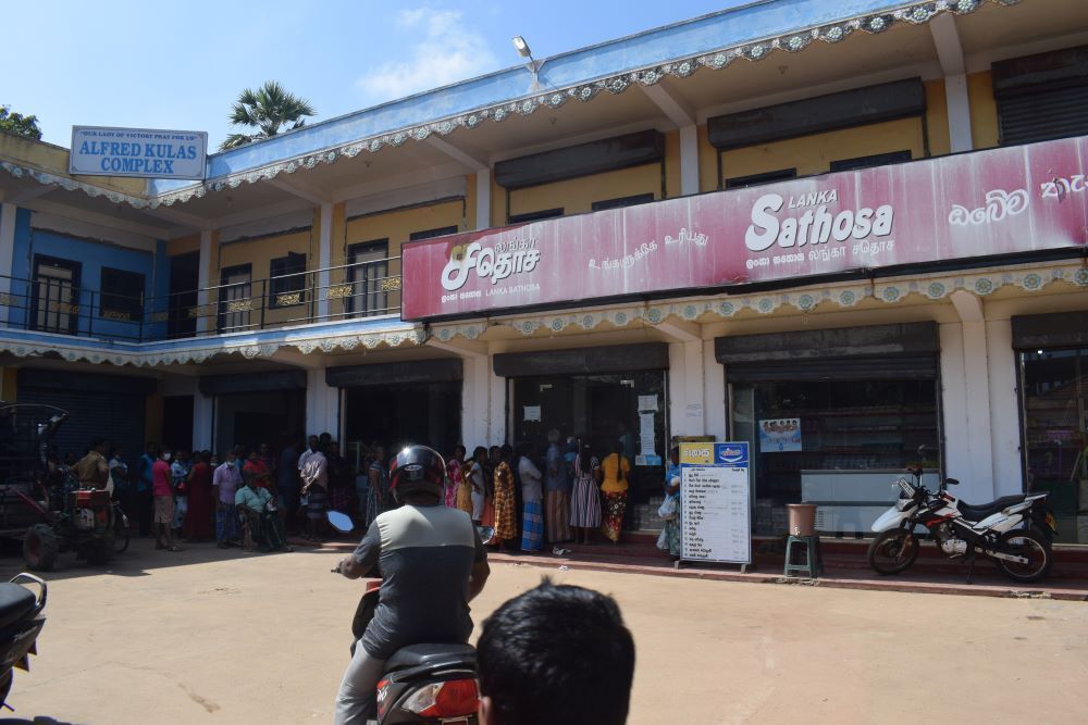 மணிக்கணக்கில் இப் பொருளைகளைப் பெறுவதற்கு நீண்ட கியூவில் நின்றபோதும், இவர்களுக்கு ஒரு கிலோ சீனியும், ஒரு அங்கர் பக்கற் மா மட்டுமே வழங்கப்பட்டது.