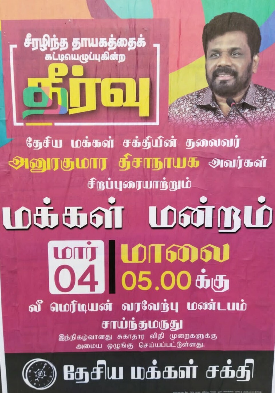 இதன்படி அம்பாறை மாவட்டத்தின் சாய்ந்தமருது லீமெரிடியன் வரவேற்பு மண்டபத்தில் அன்றைய தினம் பிற்பகல் 4 மணிக்கு இடம்பெறவிருக்கும் மக்கள் மன்றம் நிகழ்வில், அனுர குமார திசநாயக்க சிறப்புரை ஆற்றுவார்.