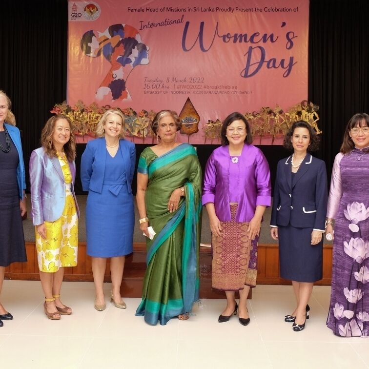 In honor of International Women’s Day, nine female Chiefs of Mission representing foreign missions to Sri Lanka came together today with high-level Sri Lankan female government officials for an afternoon aimed at “Breaking the Bias.”