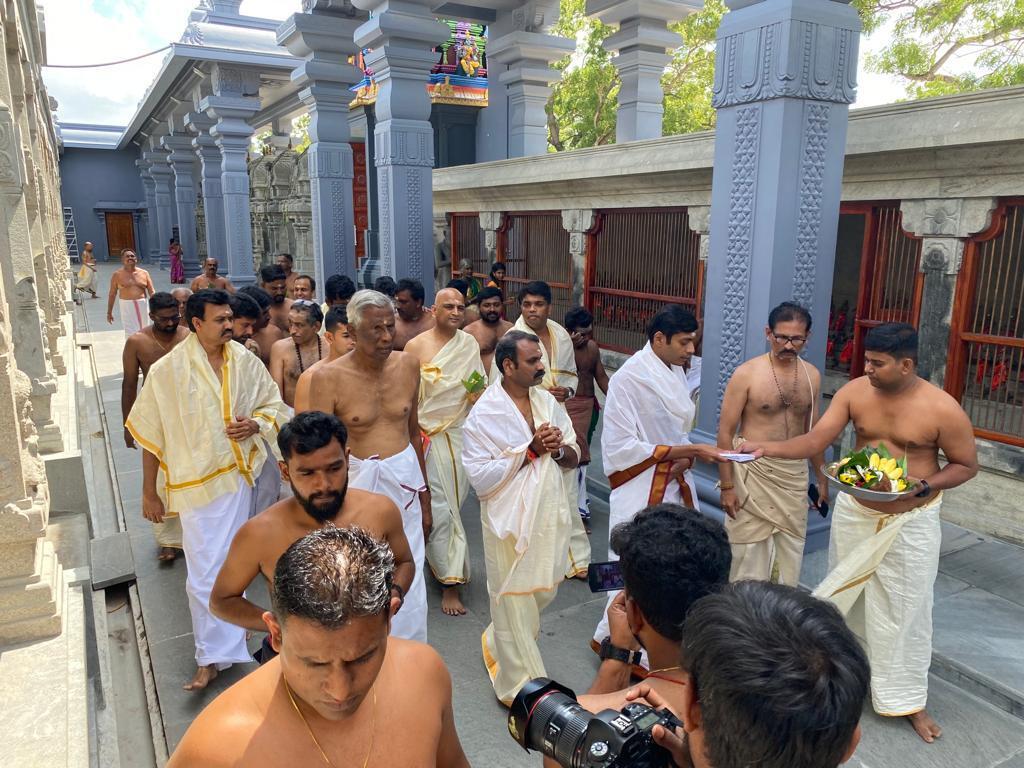 இவர்கள் இங்கு நடைபெற்ற விஷேட பூஜை வழிபாட்டில் கலந்து கொண்டதுடன் கடந்த ஏழு வருடங்களாக இந்திய அரசின் நிதி உதவியுடன் முன்னெடுக்கப்பட்ட இவ் ஆலய புனருத்தான கட்டுமானப் பணிகளையும் பார்வையிட்டனர்.