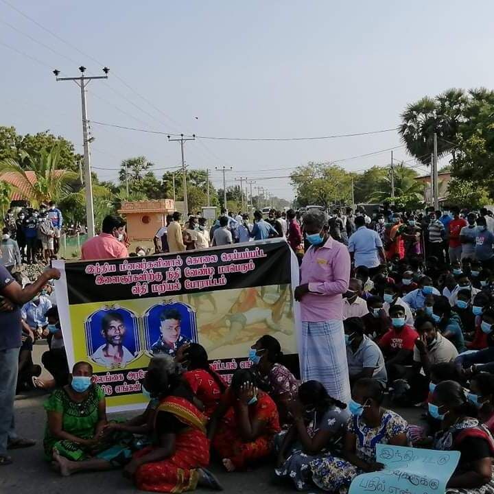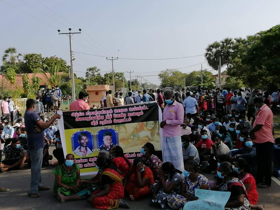 வடமராட்சி வடக்கு பருத்திததுறை சுப்பர்மடத்தில் நேற்று திங்கட்கிழமை ஆரம்பமானது ஆர்ப்பாட்டம் இன்றும் நீடித்தது. கடந்த வியாழக்கிழமை யாழ்ப்பாணம் வடமராட்சி கிழக்கிலிருந்து கடற்றொழிலுக்கு சென்று இருவர் காணாமல் போயிருந்த நிலையில் நேற்றைய தினம் 31/01/2022 சடலமாக ஆழியவளை பகுதியில் சடலமாக மீட்கப்பட்டதை தொடர்ந்து, இன்று செவ்வாய்க்கிழமை மருதங்கேணியில் உள்ள வடமராட்சி கிழக்கு பிரதேச செயலகத்தை முற்றுகையிட்டு பணியாளர்கள் எவரும் உள்ளே செல்லாத வகையில் முடக்கப்பட்டு வடமராட்சி கிழக்கு மீனவர்கள் போராட்டத்தில் ஈடுபட்டனர். இக்கண்டனப் போராட்டமானது, இரண்டு மீனவர்களின் மரணத்திற்கு நீதிகோரி நடைபெற்றது.