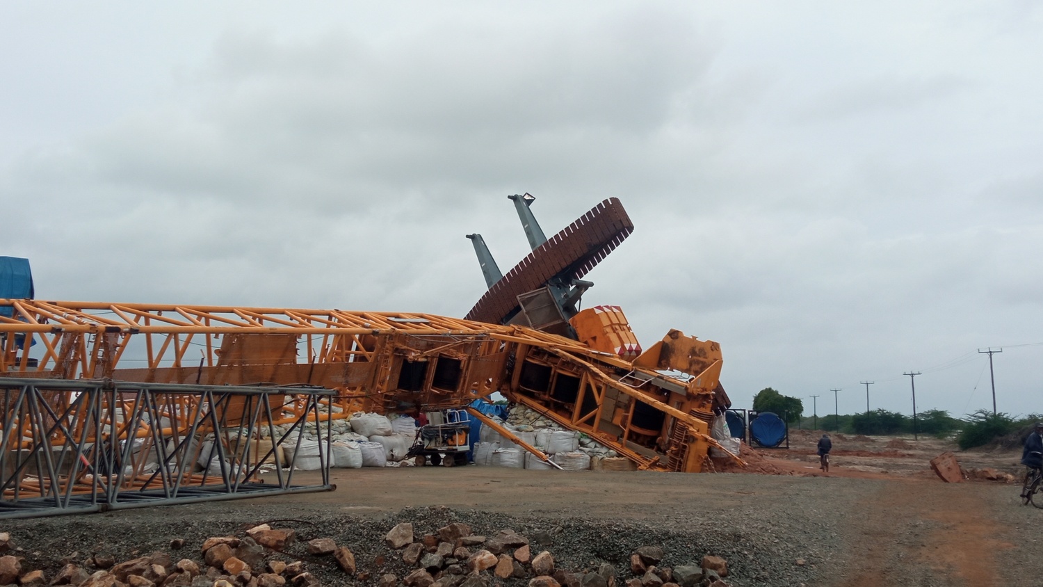 இச் சமயத்தில் கட்டுமானப் பணியின்போது ஒரு கோபுரம் உடைந்து விழுந்துள்ளது. இதன்போது கனரகரக பளு தூக்கி (கிரேன் வாகனம்) ஒன்றும் சேதமாகியது.