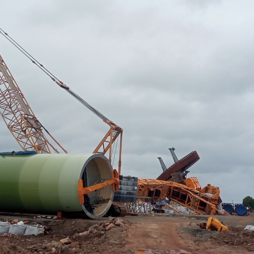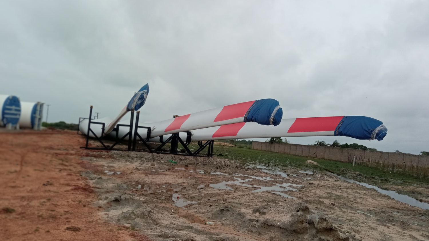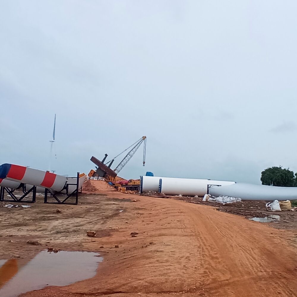 உடைந்து விழுந்தத காற்றாலை மின்சார கோபுரம்