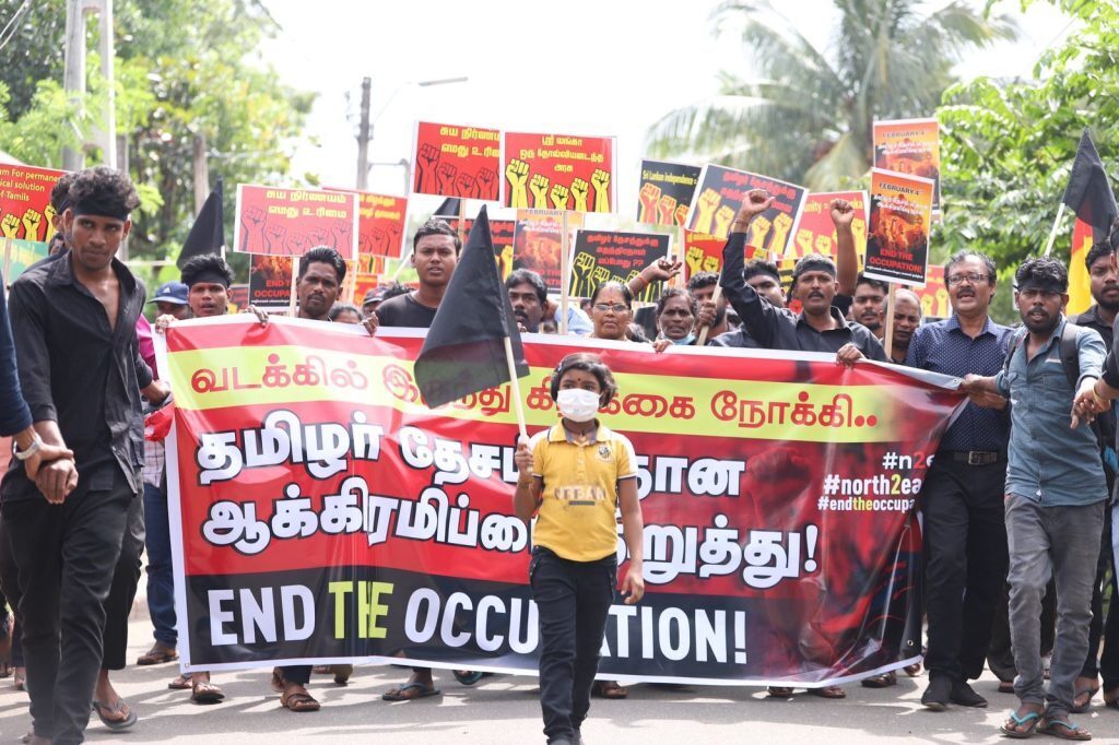 நீண்ட இந்தப் பேரணி இராணுவ முகாம்களின் அருகே சென்றபோது, இராணுவமே வெளியேறு என்று முழக்கமிட்டது. பேரணி நகர்ந்தபோது இராணுவத்தினர், பொலிஸார், புலனாய்வு பிரிவினர் என்று பலர் போராட்டக்காரர்களை அச்சுறுத்தும் வகையில் செயல்பட்டனர். அத்துடன், போராட்டக்காரர்களை காணொலி, ஒளிப்படம் எடுத்துக் கொண்டனர்.