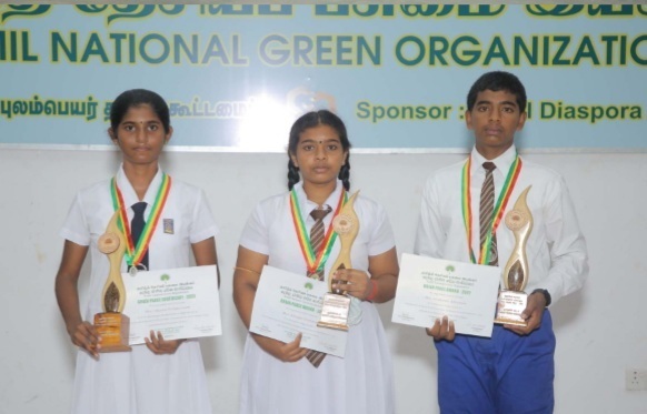 இவர்களில் முதல் மூன்று இடங்களைப் பெற்ற வெற்றியாளர்களுக்குச் சூழலியல் ஆசான் க.சி. குகதாசன் ஞாபகார்த்தப் பசுமை அமைதி விருதுகள் வழங்கப்பட்டன.