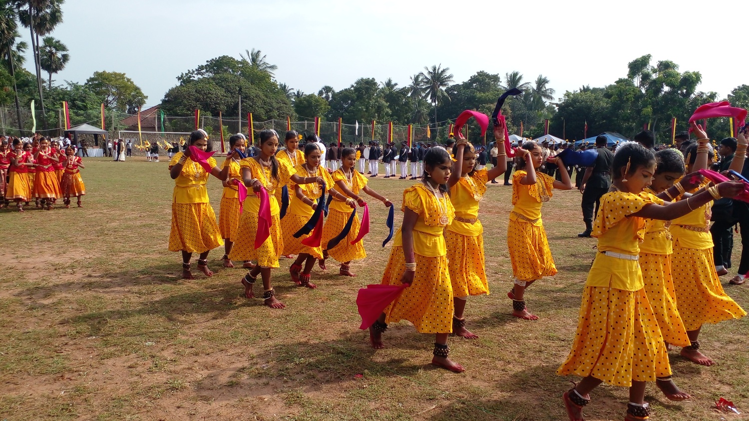 இராணுவத்தினராலும், மாணவர்களாலும் அணிவகுப்பு மரியாவைகளும் இடம் பெற்றது. இதில் தேசிய தேசியக் கொடியினை யாழ் மாவட்ட இராணுவ தளபதி ஏற்றி வைத்தார்.. அவர்களுடன் வடமராட்சி வடக்கு பிரதேச செயலாளர், கரவெட்டி பிரதேச செயலாளர் கல்வி அமைச்சின் செயலாளர் ஆகியோர் இணைந்திருந்தனர்.