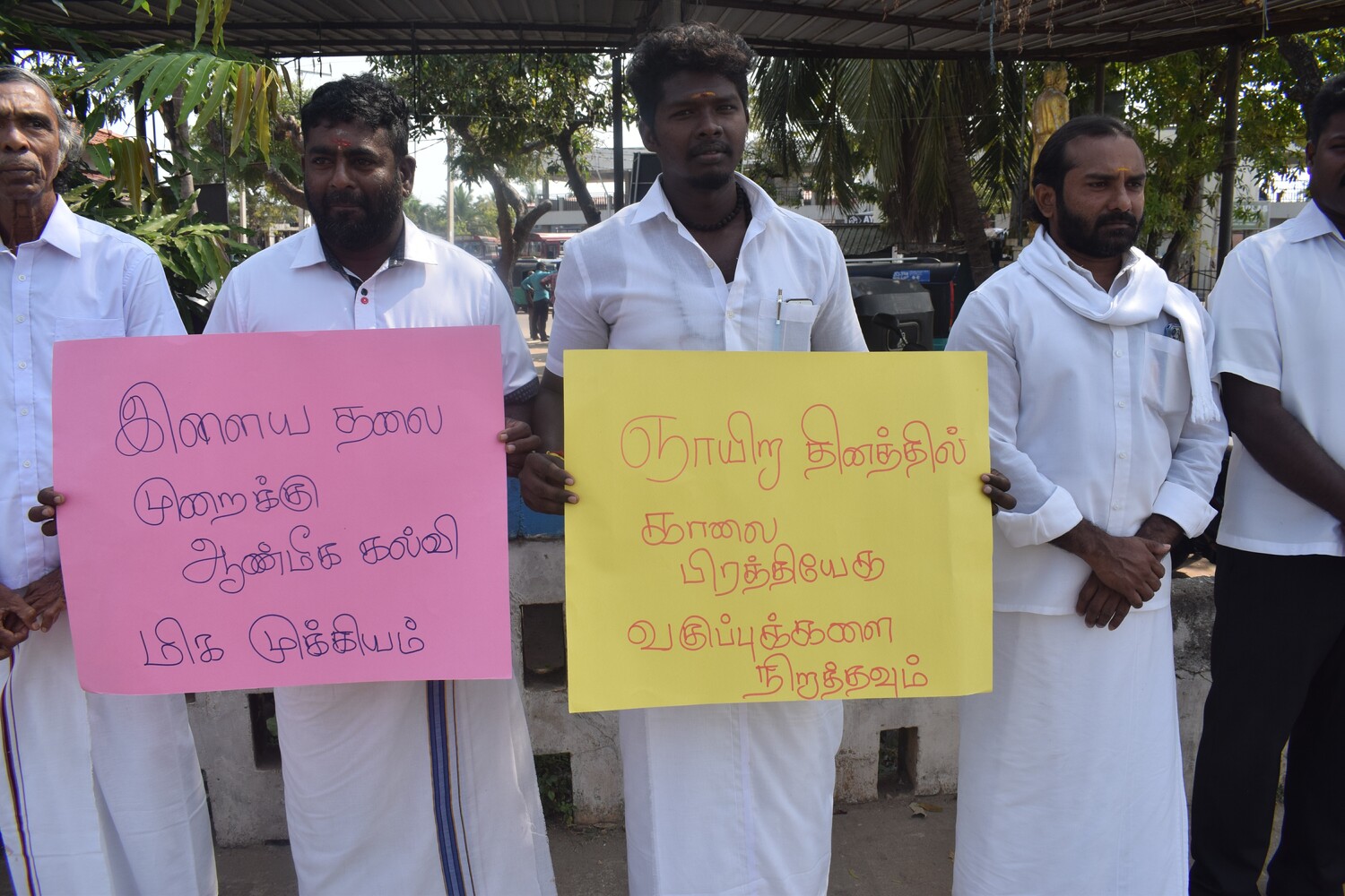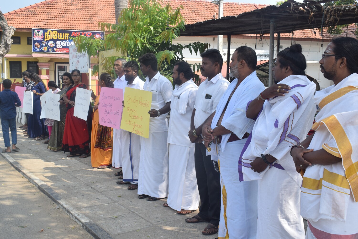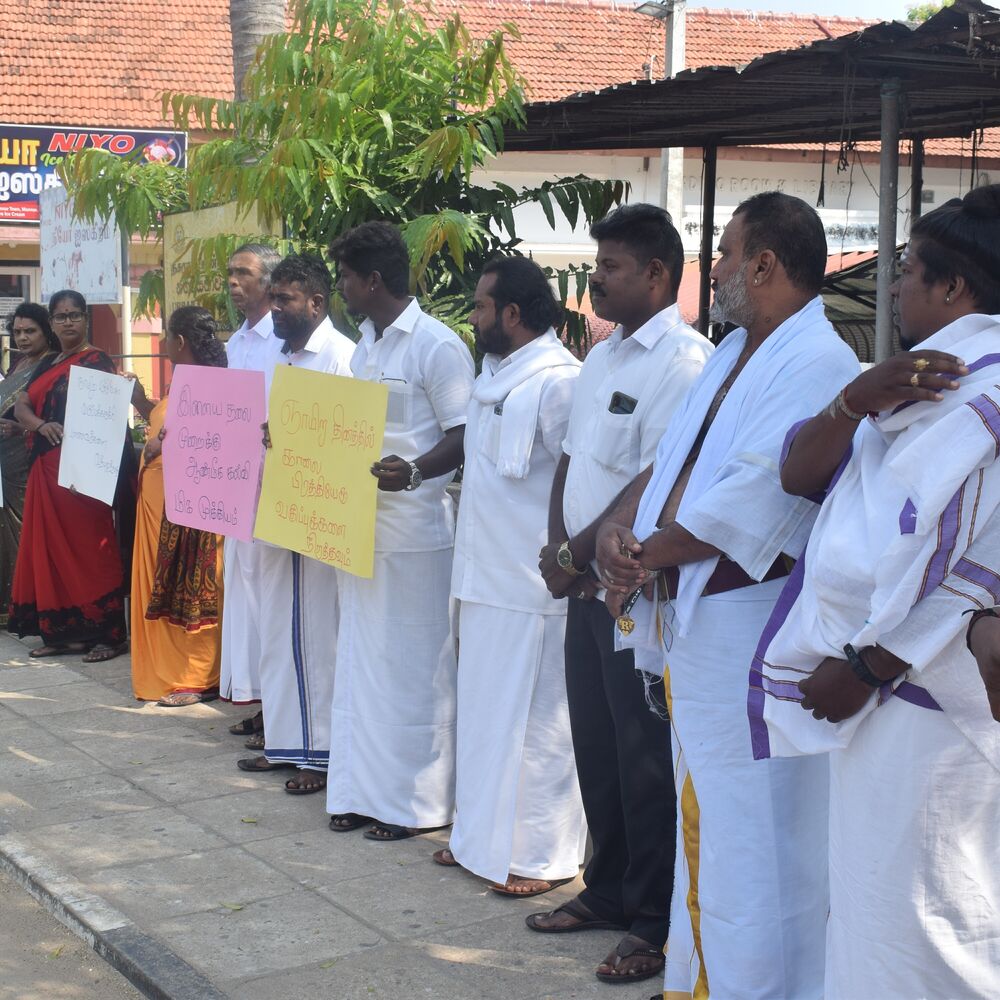 இக் கவனயீர்ப்பு போராட்டத்தில் இந்து மதக் குருக்கள் அறநெறி பாடசாலை ஆசிரியர்கள் கலந்து கொண்டனர்.
