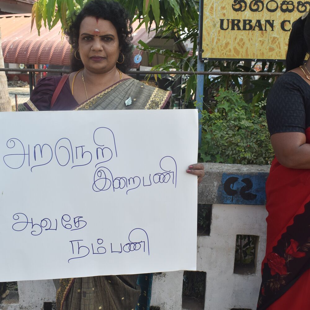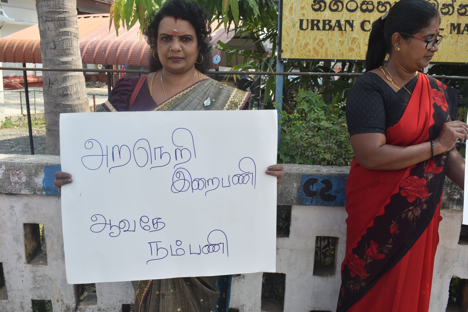போன்ற வாசகங்கள் அடங்கிய பதாதைகள் போராட்டக்காரர்களால் ஏந்தப்பட்டிருந்தன.
