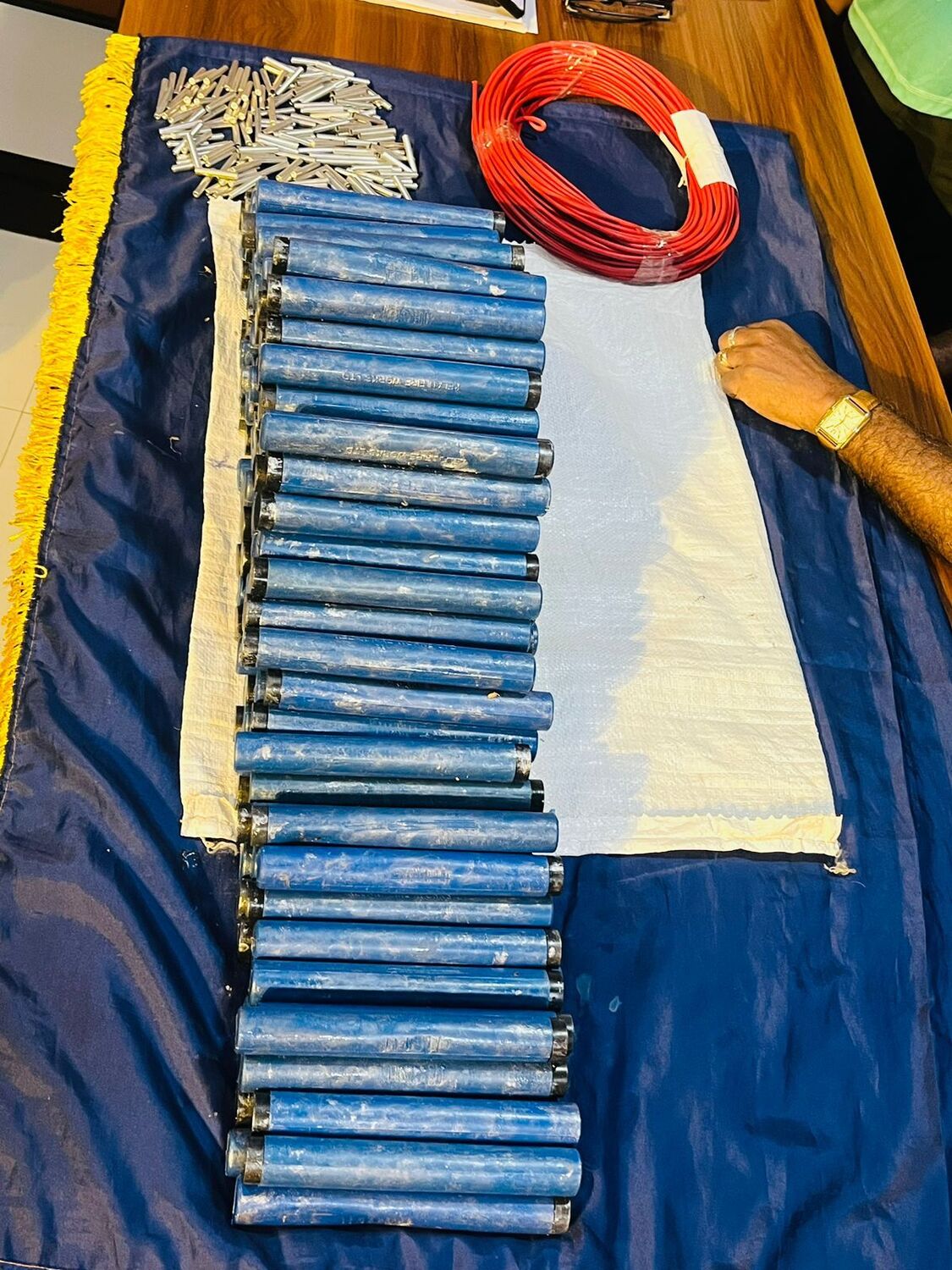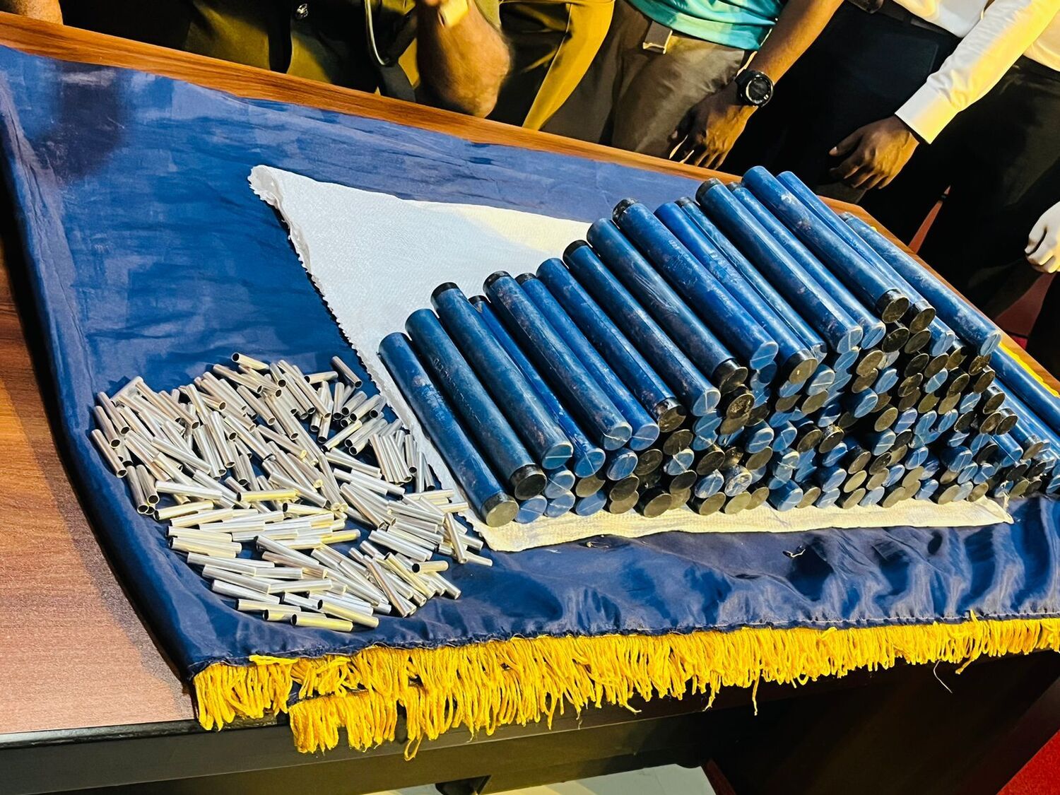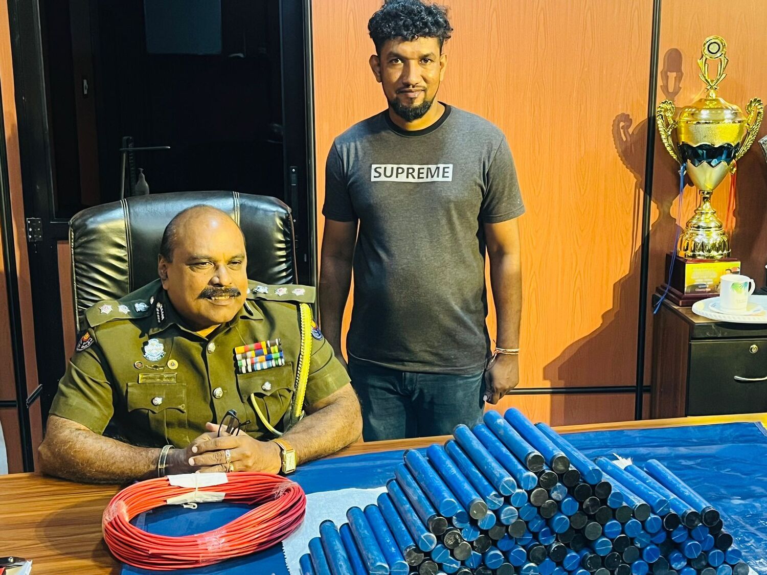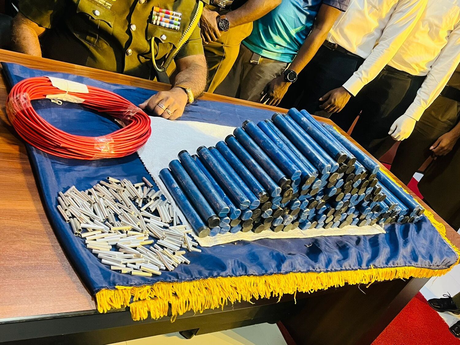 கைப்பற்றப்பட்ட பொருட்களாக jJEANETTENITA STRICT -158 மற்றும் DETONATIR 200 மற்றும் அதற்குப் பயன்படும் 160 அடி நூல் மற்றும் கொண்டுசெல்ல தயாராக வைத்திருந்த பட்டா வாகனத்தைக் கைப்பற்றியதுடன், சந்தேக நபர்களையும் பொலிசார் கைது செய்து உள்ளனர்.