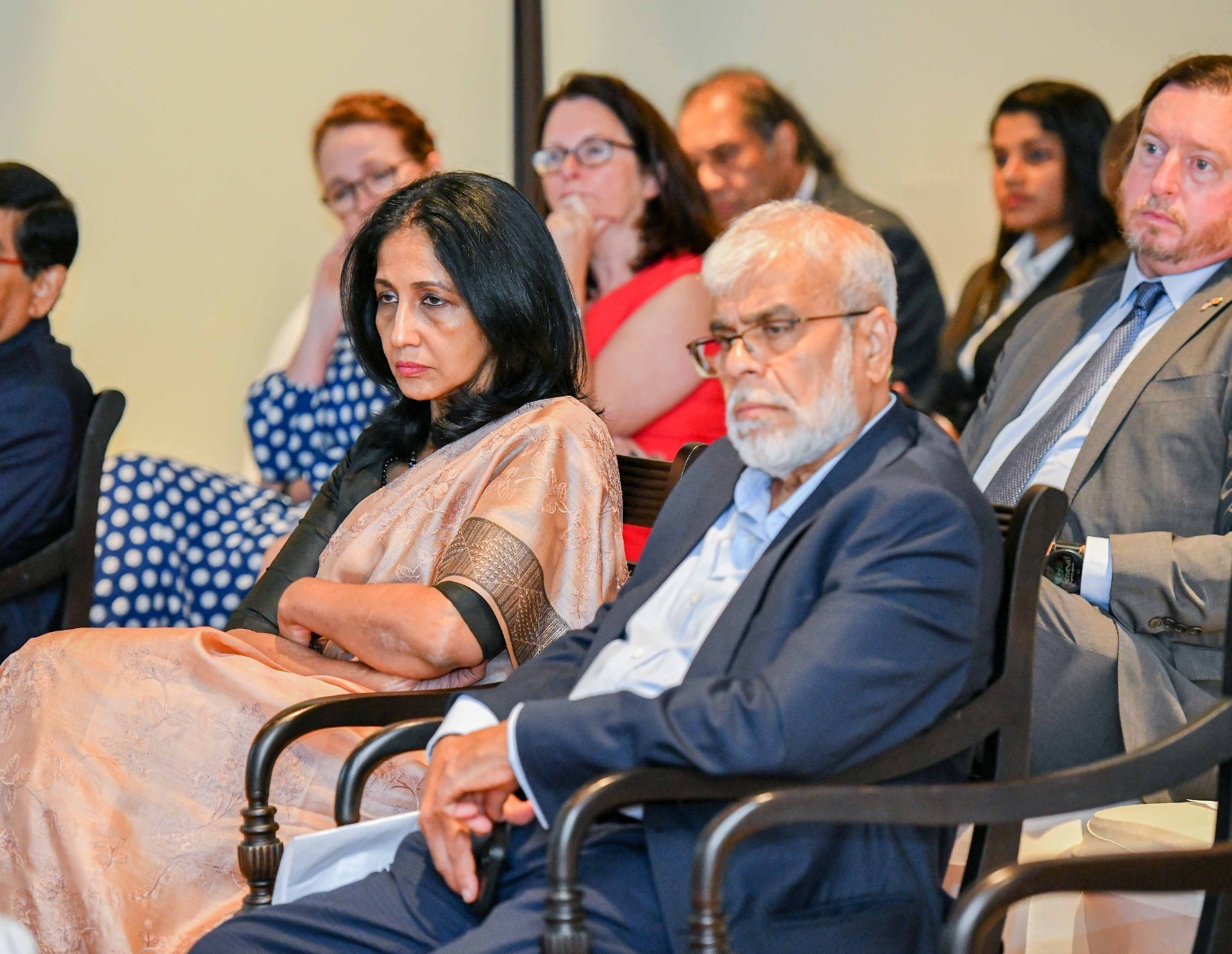 முன்னாள் சபாநாயகர் கரு ஜயசூரிய, பாராளுமன்ற உறுப்பினர்களான வஜிர அபேவர்தன, காவிந்த ஜயவர்தன, மத்திய வங்கி ஆளுநர் கலாநிதி நந்தலால் வீரசிங்க, வெளிவிவகார அமைச்சின் செயலாளர் அருணி விஜேவர்தன, இராஜதந்திரிகள், பல்கலைக்கழக பேராசிரியர்கள், ஆராய்ச்சி நிறுவனங்களின் பிரதிநிதிகள் உள்ளிட்ட பலரும் கலந்துகொண்டனர்.