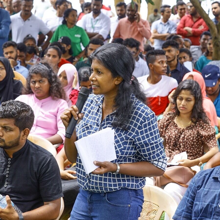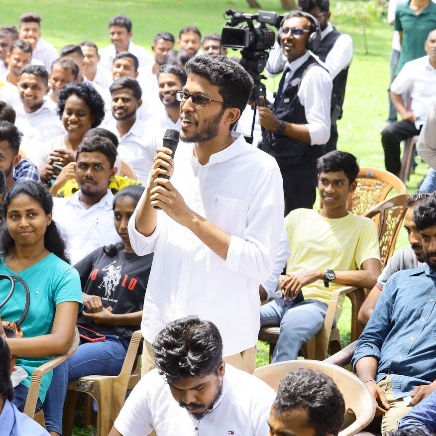 ஜனாதிபதி அவர்களே! நான் ஒரு சட்டக்கல்லூரி மாணவன். 1989 ஆம் ஆண்டு ஒரே நாளில் எனது குடும்பத்தைச் சேர்ந்த 06 பேரை ஜே.வி.பி கொன்று 08 மில்லியன் பெறுமதியான சொத்துக்களை சூறையாடியது. குடும்பத்தவர்களின் சடலங்களை கூட மயானத்திற்குக் கொண்டு செல்ல அனுமதிக்கப்படவில்லை. ஜே.வி.பி ஆவி இன்னும் இருப்பதாக நாங்கள் அச்சத்தில் இருக்கிறோம்.