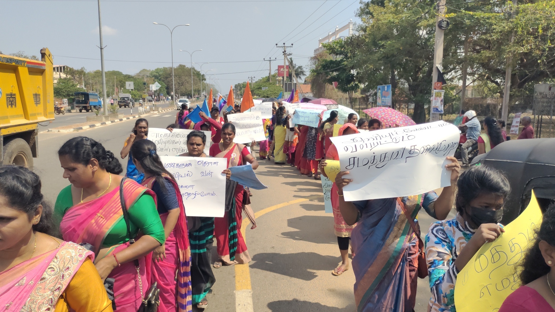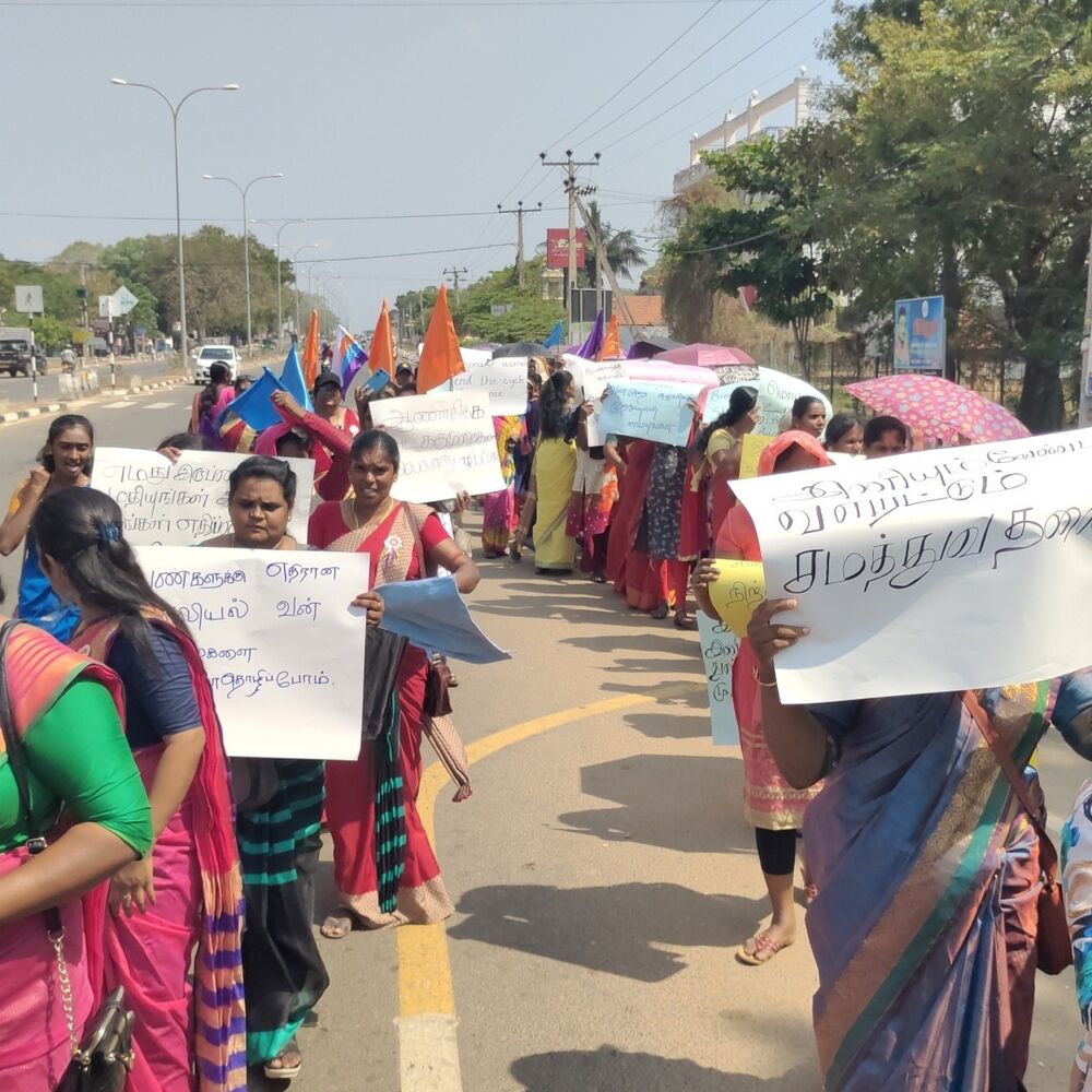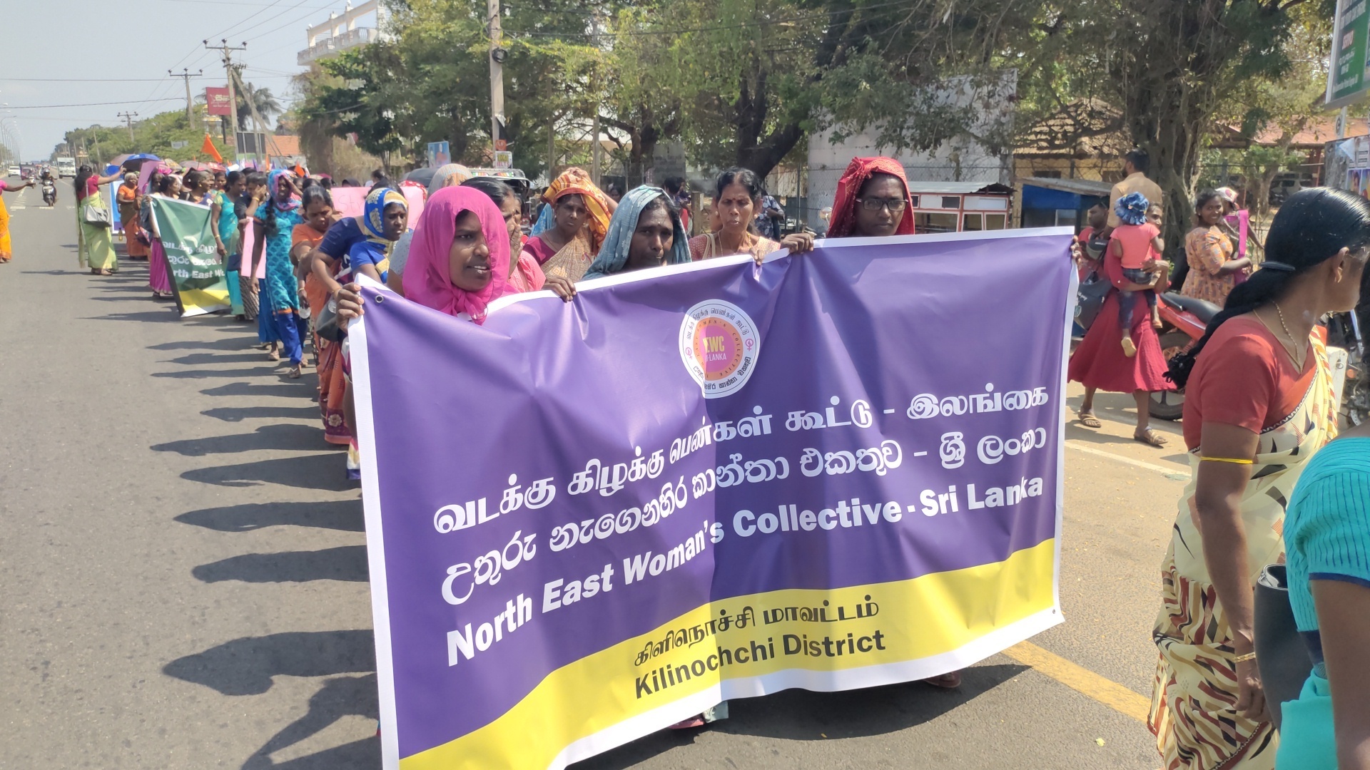 யுத்தம் மற்றும் குடும்ப வன்முறைகளால் பாதிக்கப்பட்ட பெண்களுக்கு நீதி கோரியும், பால்நிலை சாத்துவம், உரிமைகளை வலியுறுத்தியும் கவனயீர்ப்பு பேரணி A9 வீதி ஊடாக பசுமை பூங்காவை சென்றடைந்தது.