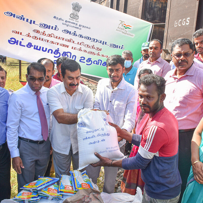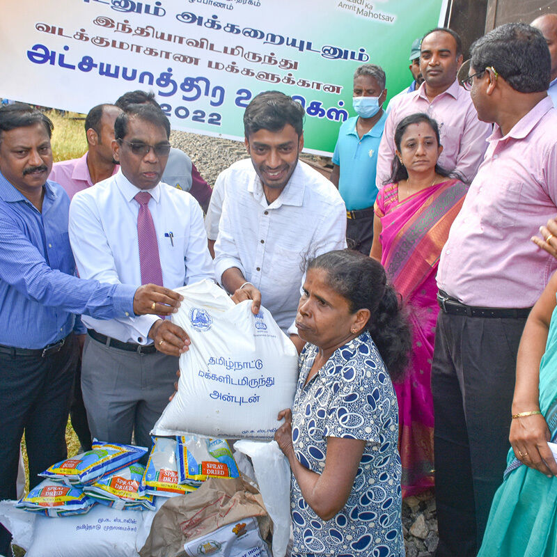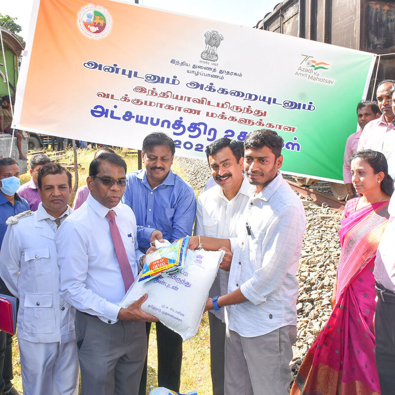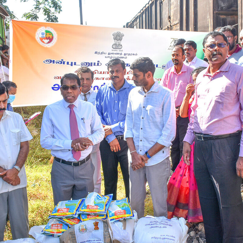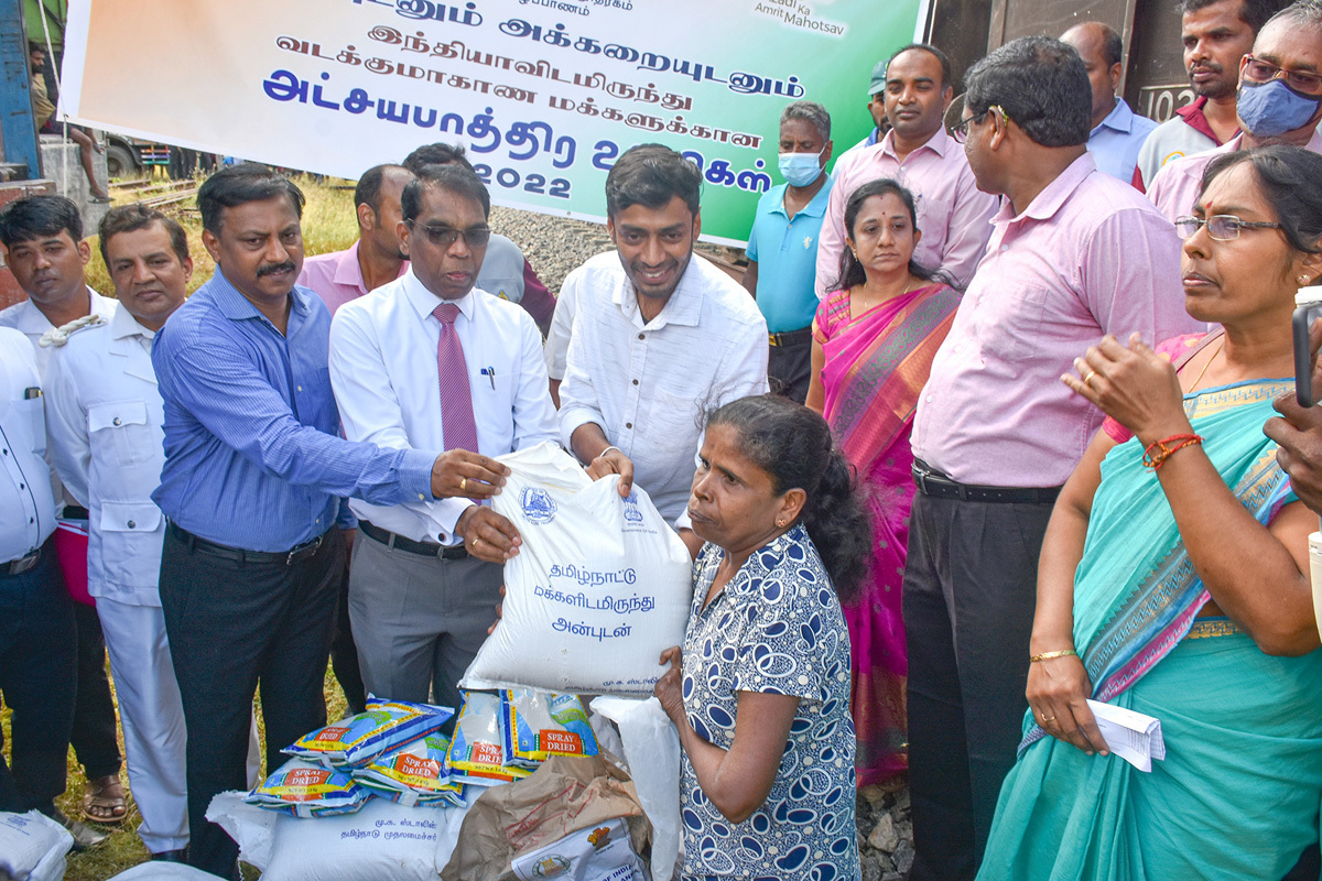 இவ்வாறு எடுத்துவரப்பட்ட பொருள்களில் மருதங்கேணி பிரதேச செயலகப் பிரிவுக்குரியவை பளை ரயில் நிலையத்திலும், சாவகச்சேரி, பருத்தித்துறை, கரவெட்டி பிரதேச செயலகப் பிரிவுகளுக்குரியவை சாவகச்சேரி ரயில் நிலையத்திலும் இறக்கப்பட்டது. அதேநேரம் எஞ்சியவை யாழ்ப்பாணம் ரயில் நிலையத்தில் வைத்து யாழில் உள்ள இந்தியத் துணைத் தூதுவர் ராகேஷ் நட்ராஜினால் மாவட்டச் செயலாளரிடம் கையளிக்க மாவட்டச் செயலாளர் பிரதேச செயலாளர்களிடம் கையளித்தார்.