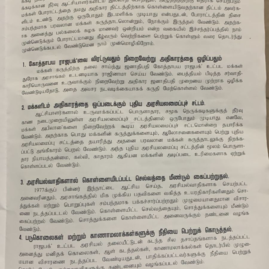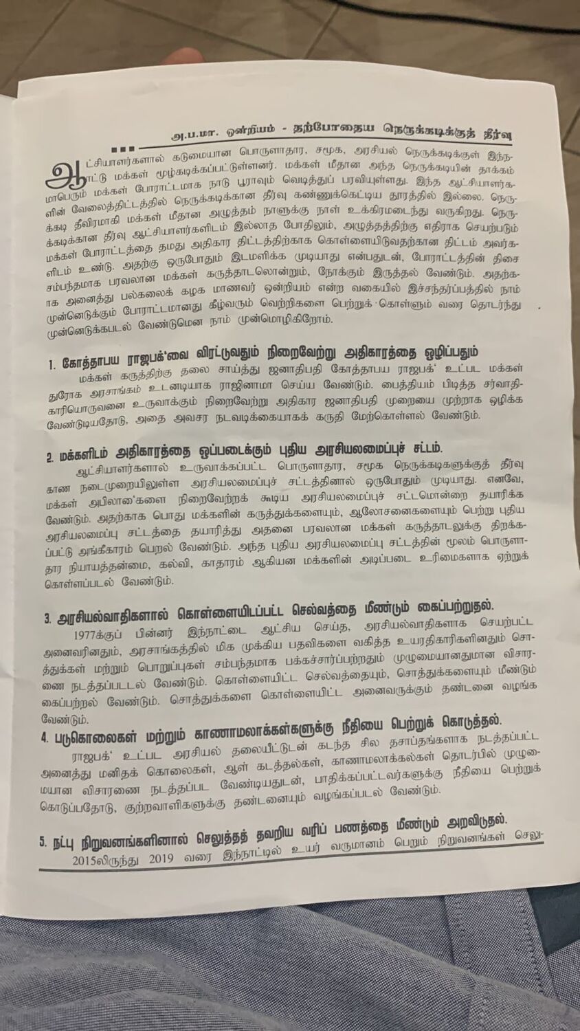 விசேடமாக இந்த 13 கோரிக்கைகளுக்குள்ளே வடக்கு கிழக்கில் வாழும் தமிழ் மக்களுக்கான அரசியல் தீர்வு தொடர்பிலான எந்தவொரு விடயங்களும் இல்லாத காரணத்தினால், அந்த விடயங்களையும் முன்வைக்குமாறு அன்பான வேண்டுகோளினை இந்த நேரத்திலே முன்வைக்கின்றோம்.