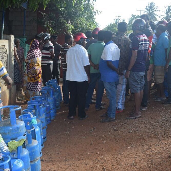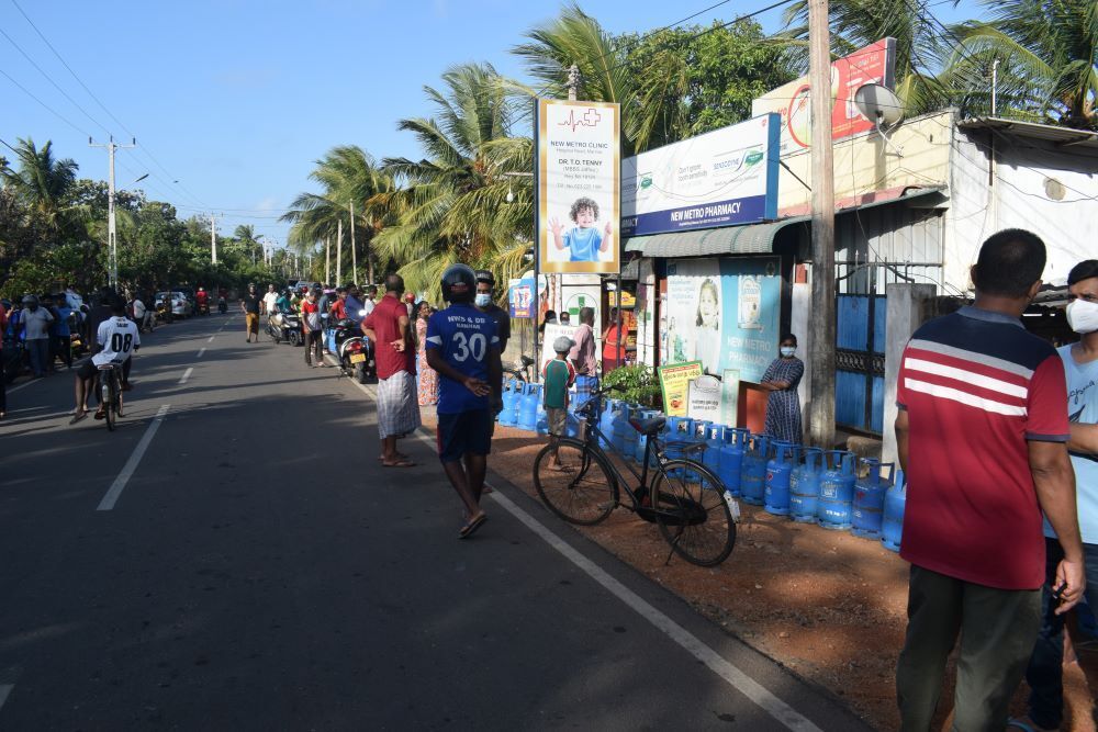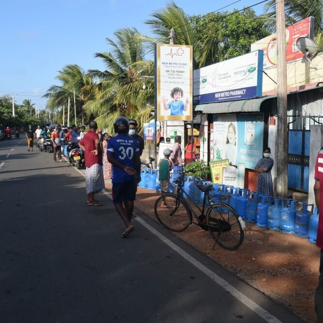 ஆனால் எரிவாயு வரவில்லை எனவும் தங்களுக்கு இது பற்றி தெரியாது என முகவர் கூறியும் மக்கள் கேட்காத நிலையில் அந்த இடத்தில் நீண்ட நேரமாக வெயிலிலும் கடும காற்றின் தூசியிலும் காவல் நின்றனர்.