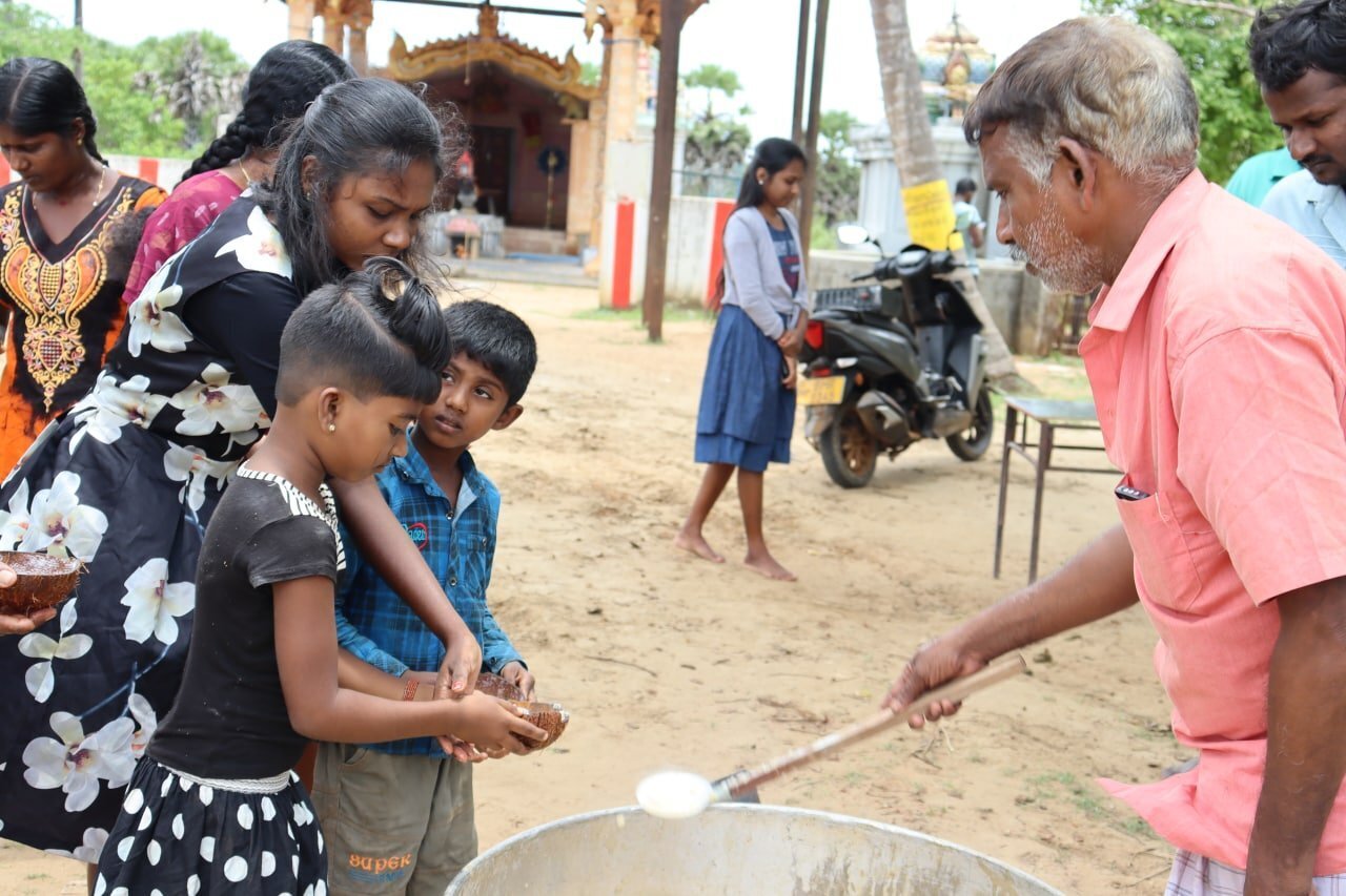 இங்கு ஒன்று கூடியவர்கள் கஞ்சியை அந்த இடத்தில் காய்ச்சியதுடன் அதனை சிரட்டையில் பொதுமக்கள் என பலருக்கும் பரிமாறியிருந்தனர்.