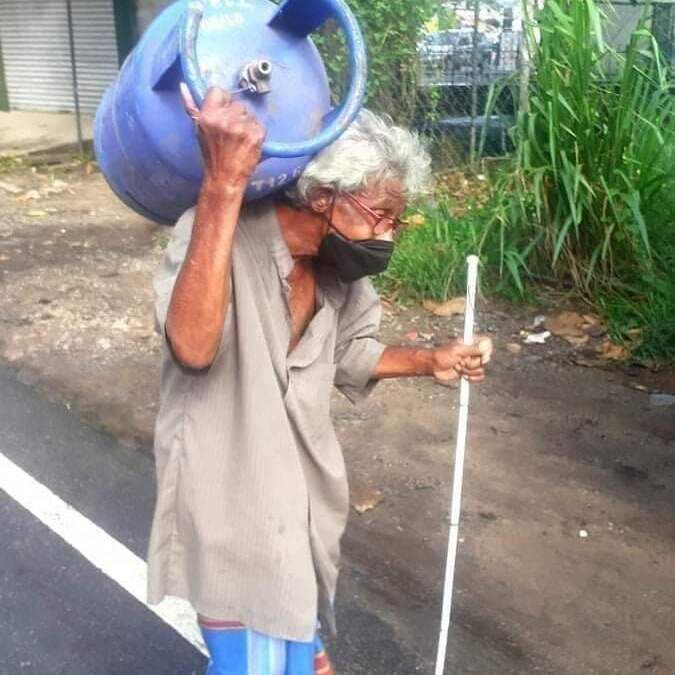 குறிப்பாக வயது முதிர்ந்த ஒருவர் எரிவாயு சிலிண்டரை தோளில் சுமந்தவாறு பொல் ஊண்றிக் கொண்டு நடப்பதாக வெளியாகியுள்ள அந்தப்பரிதாபகரமான படம் இந்த செய்திக்குரிய படங்களுடன் இணைத்துத் தரப்படுகின்றது.