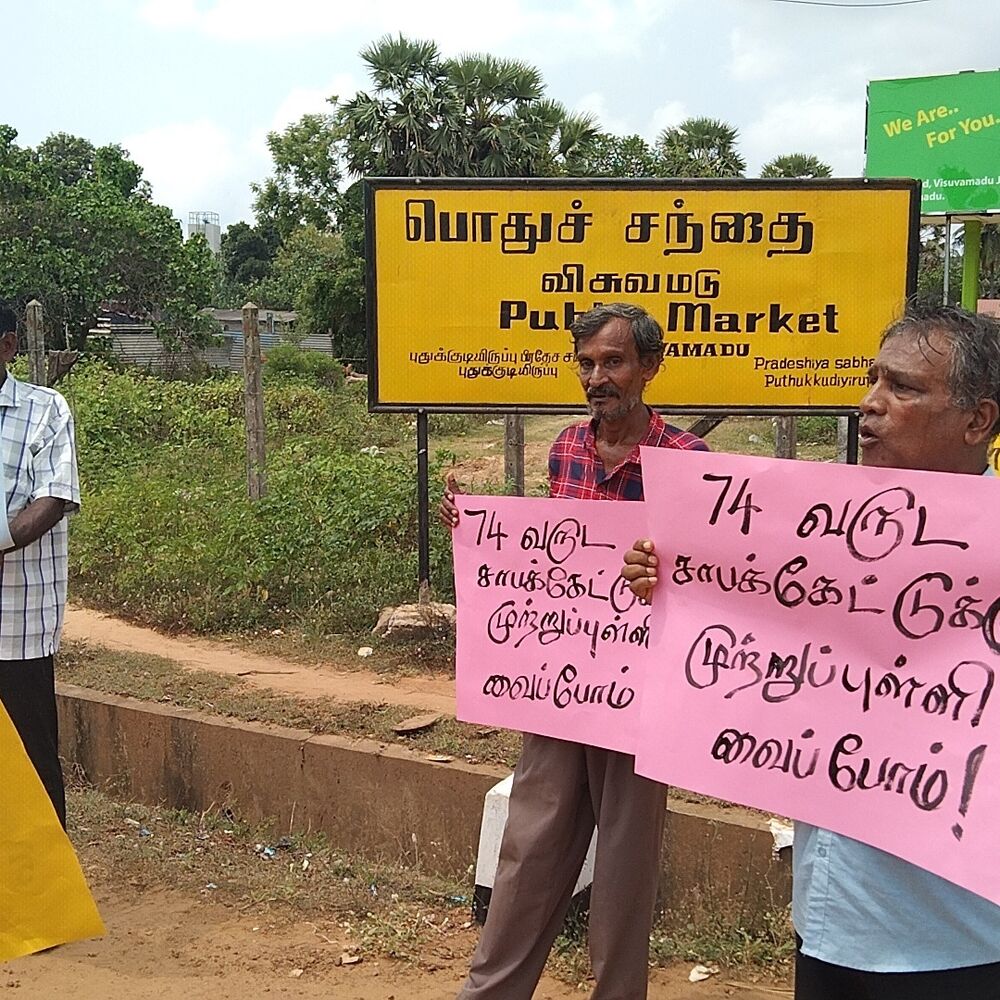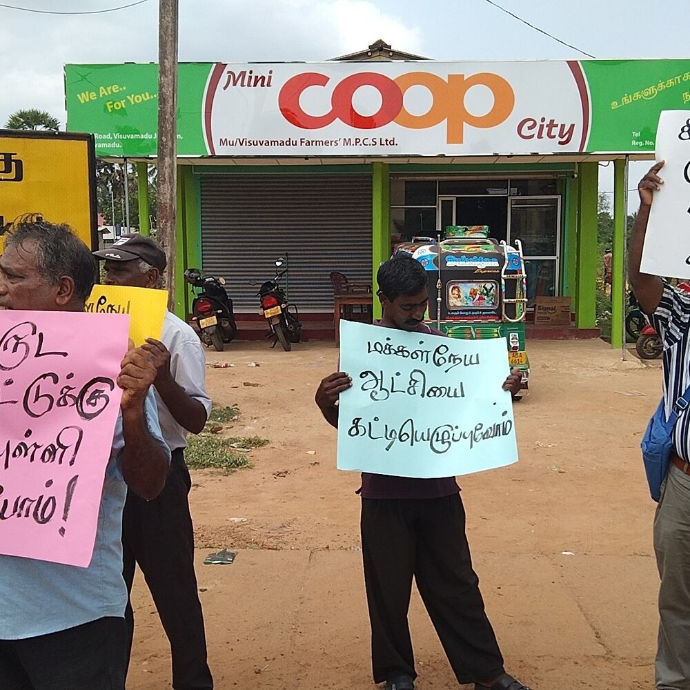 மக்கள் விடுதலை முன்னணியினரின் ஏற்பாட்டில் இன்று வெள்ளிக்கிழமை தினம் விசுவமடு பகுதியில் போராட்டம் ஒன்று இன்று முன்னெடுக்கப்பட்டது.