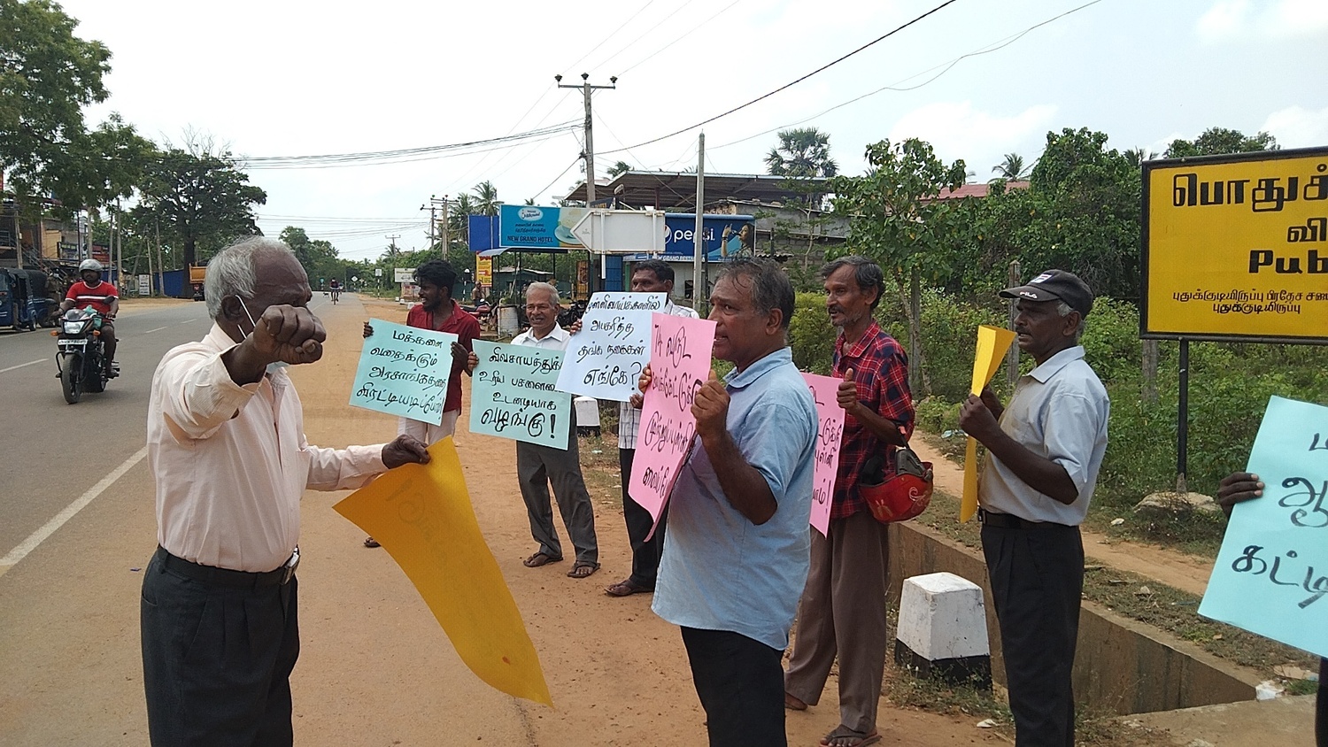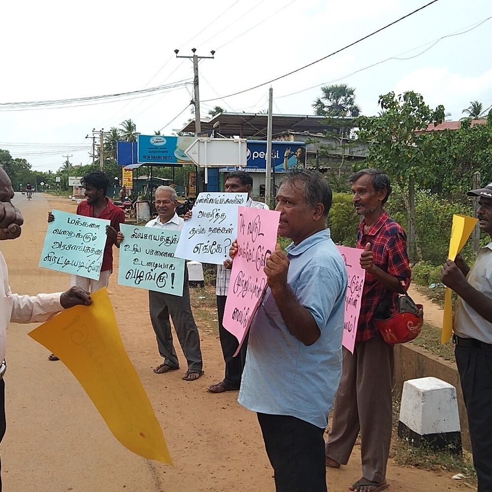 கிளிநொச்சி முல்லைத்தீவு எல்லை பகுதியான விசவமடு சந்தியில் குறித்த போராட்டம் காலை 11 மணியளவில் இடம்பெற்றது.