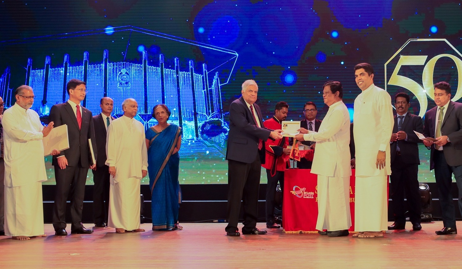 50 வருடங்களில் பண்டாரநாயக்க ஞாபகார்த்த சர்வதேச மாநாட்டு மண்டபத்திற்கு விழாக்கள் மற்றும் கண்காட்சி என்பவற்றின் ஊடாக அதிக வருமானம் ஈட்டிக் கொடுத்த நிறுவனங்களுக்கு இதன் போது நினைவுப் பரிசுகளும் வழங்கி வைக்கப்பட்டன. கண்காட்சிப் பிரிவில் புத்தக வெளியீட்டாளர் சங்கத்திற்கும் விழாப் பிரிவில் பிரிடிஷ் கவுன்சிலுக்கும் ஜனாதிபதியினால் நினைவுப் பரிசில்கள் வழங்கப்பட்டன.