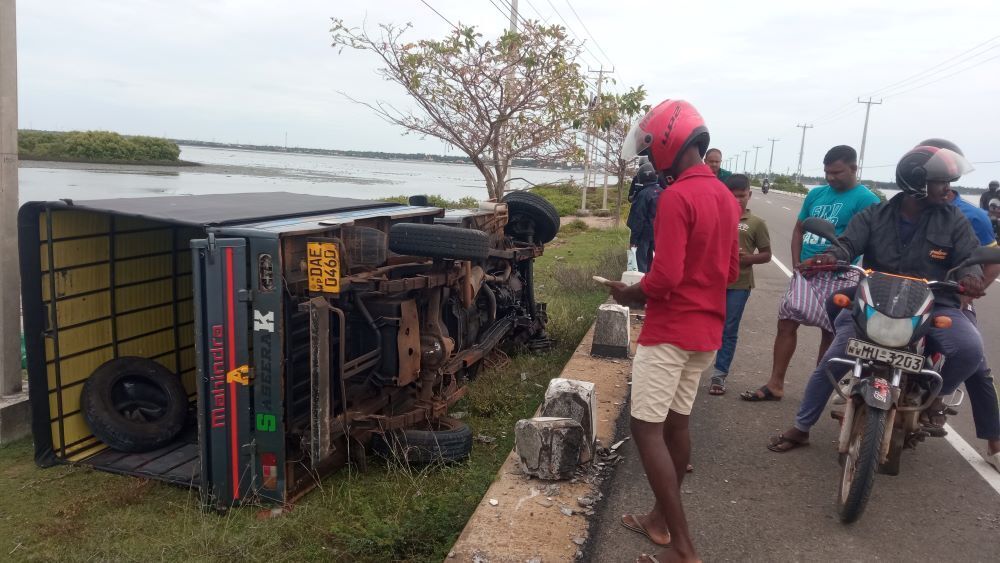 இவ் விபத்தானது மன்னார் சிலாவத்துறை வேப்பங்குளம் பகுதியில் இருந்து மன்னார் நோக்கி இறால் ஏற்றி வந்த கெப் ரக வாகனத்தில் சாரதி நித்திரை மயக்கத்தில் வாகனத்தை செலுத்தி வந்த வேளையில் பாலத்தின் வீதியோர கற்களில் மோதி வாகனம் தடம் புரண்டு விபத்துக்குள்ளானது என தெரிவிக்கப்பட்டது.