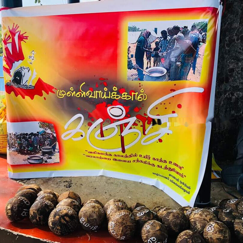விடுதலைக்காக உயிரினை துச்சமாக மதித்து களத்தில் நின்ற எமது மக்கள் பட்டினி சாவினை எதிர்கொள்ள கூடாது என்று தமிழர் புனர்வாழ்வு கழகமும், விடுதலை சார்ந்த அமைப்பும் தம்மிடம் இருந்த அரிசியினை பங்கிட்டு முள்ளிவாய்க்கால் கஞ்சியாக காய்ச்சி, அதை மக்களுக்கு வழங்கி, மக்களினை பட்டினி சாவிலிருந்து காத்தனர். எறிகணைகளும், கொத்து குண்டுகளும் எமது மக்களின் உயிர்களை துடிக்கத் துடிக்க சிதறவைத்துப் பறித்தன. ஆனால், கஞ்சியானது எஞ்சியவர்களின் உயிர்களைக் காத்தது. இந்த உயிர் காத்த கஞ்சியினையே இன்று நாம் எமது உரிமை போராட்டத்தின் ஓர் வடிவமாக, எமது மக்களின் மீதான இனவழிப்பின் சர்வதேச நீதி தேடலின் ஓர் கருவியாக, எமது இளம் சமுதாயத்திற்கு கடத்த வேண்டிய ஒரு கட்டுப்பாடில் நாம் அனைவரும் உள்ளோம். நாம் எமது இனவிடுதலையை அடையும் வரை இக்குறியீடு கடத்தப்படும் என உறுதியெடுக்கின்றோம்.