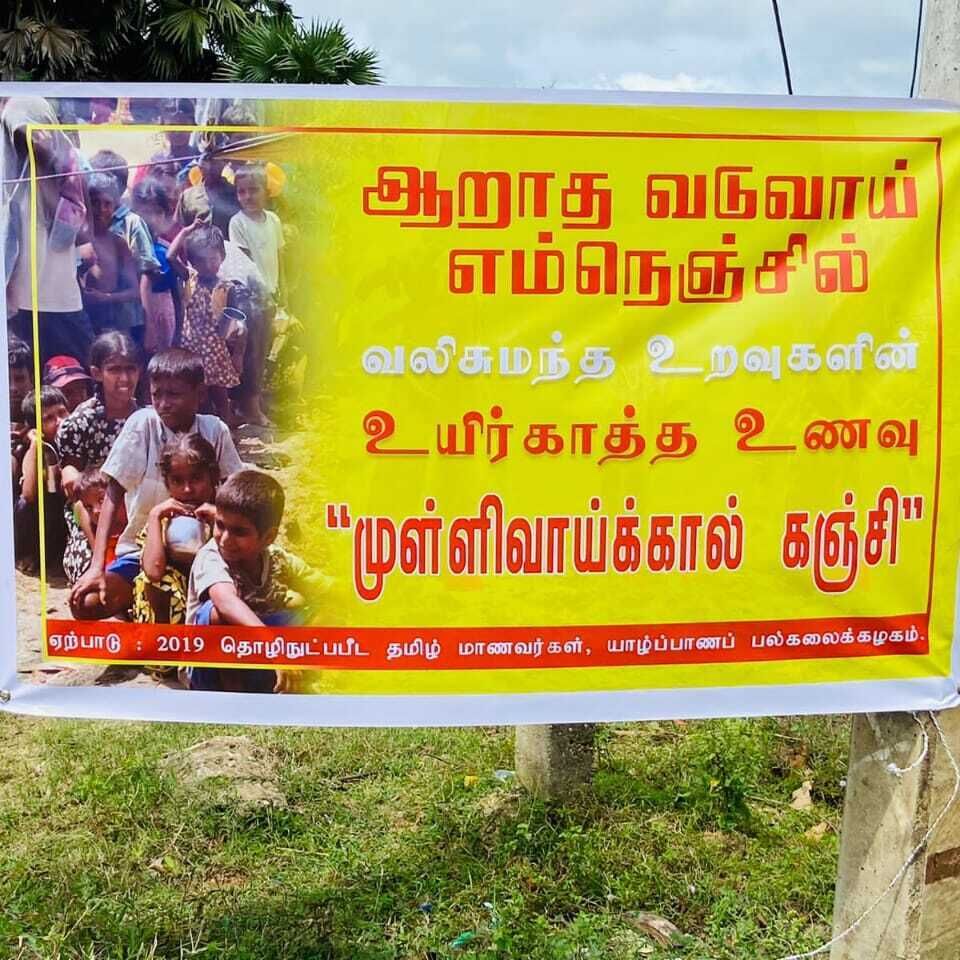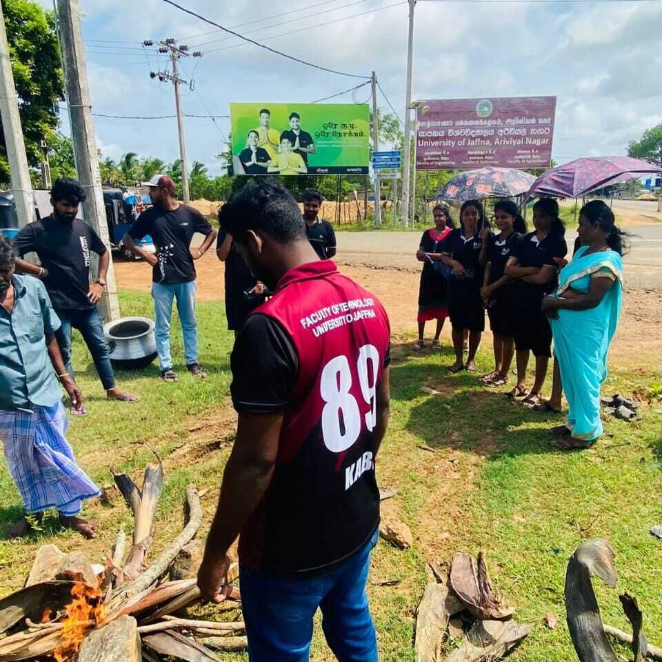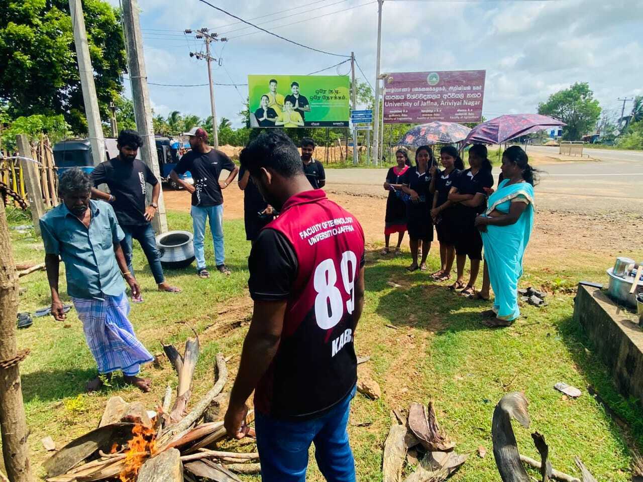 யாழ். பல்கலைக்கழக கிளிநொச்சி அறிவியல் நகர் வளாக A9 வீதி சந்தியில் மாணவர்களால் முள்ளிவாய்க்கால் கஞ்சி இன்று (13) மதியம் காெடுக்கப்பட்டது.