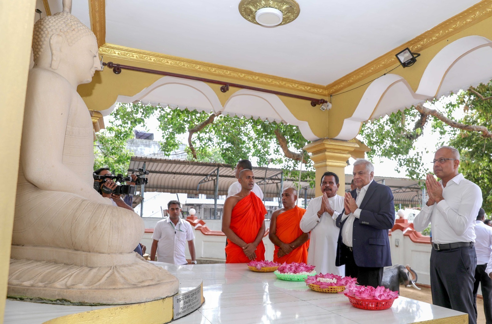 ஜனாதிபதி ரணில் விக்ரமசிங்க இன்று பிற்பகல் மொரட்டுவ பௌத்த விகாரைக்குச் சென்று மத வழிபாடுகளில் ஈடுபட்டார். மொரட்டுவ பௌத்த சங்கத்தின் 100ஆவது ஆண்டு நிறைவை முன்னிட்டு வளாகத்தில் சந்தன மரச்செடியை நடும் நிகழ்விலும் ஜனாதிபதி கலந்துகொண்டார்.