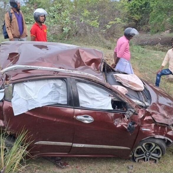 அல்வாய் திக்கம் பகுதியைச் சேர்ந்த கணவன், மனைவி மற்றும் இரு பிள்ளைகளுடன் மட்டக்களப்பு நோக்கி பயணித்த காரொன்று திருகோணமலை - ஈச்சலம்பற்று வட்டவன் பகுதியில் நேற்று (22) புதன் கிழமை வேகக்கட்டுப்பாட்டை இழந்து பாதையை விட்டு விலகி வித்துக்குள்ளாகியுள்ளதாக ஈச்சலம்பற்று பொலிஸார் தெரிவித்துள்ளனர்.