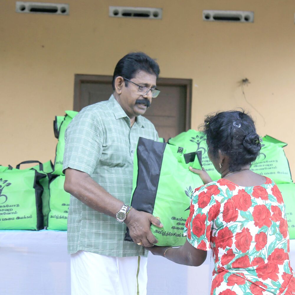 தமிழ்த் தேசியப் பசுமை இயக்கத்தின் தலைவர் பொ. ஐங்கரநேசனின் தலைமையில் நடைபெற்ற இந்நிகழ்ச்சியில் நல்லூர் பிரதேச செயலக எல்லைக்கு உட்பட்ட வெவ்வேறு பகுதிகளில் இருந்து தெரிவு செய்யப்பட்ட நூறு குடும்பங்களுக்கு அத்தியாவசிய உலருணவுகள் அடங்கிய பொதிகள் வழங்கி வைக்கப்பட்டுள்ளன.