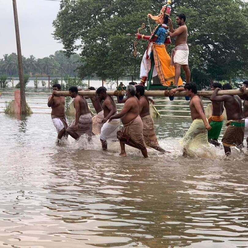 யாழ் குடாநாட்டில் பல கோவில்களின் வீதிகள் வெள்ளத்தில் மூழ்கியுள்ள நிலையில் சூரன்போர் உற்சவம் நடைபெற்றது.