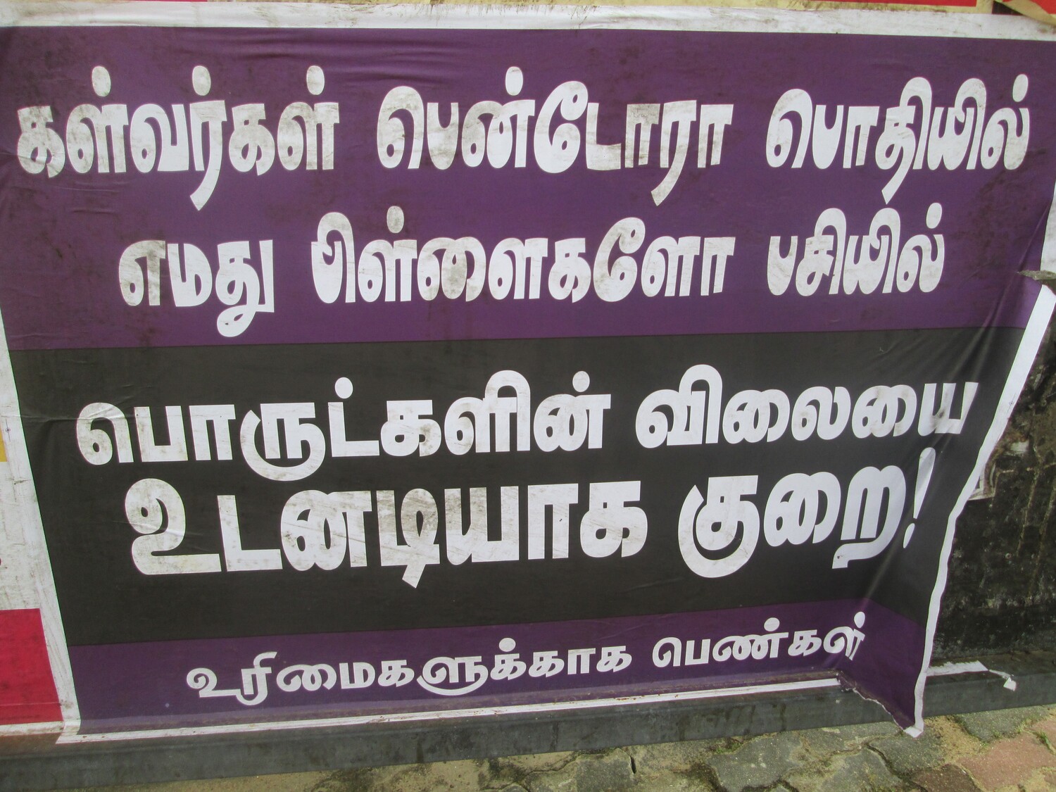 இதன் ஓர் அங்கமாக பண்டங்களின் விலை உயர்வுகளுக்குத் தீர்வை உடனடியாக வழங்குமாறு கோரி சுவரொட்டிகள் மூலம் அழுத்தத்தைக் கொடுத்துள்ளது.