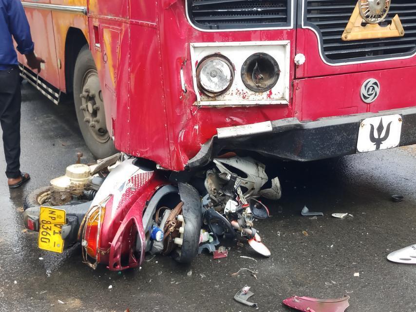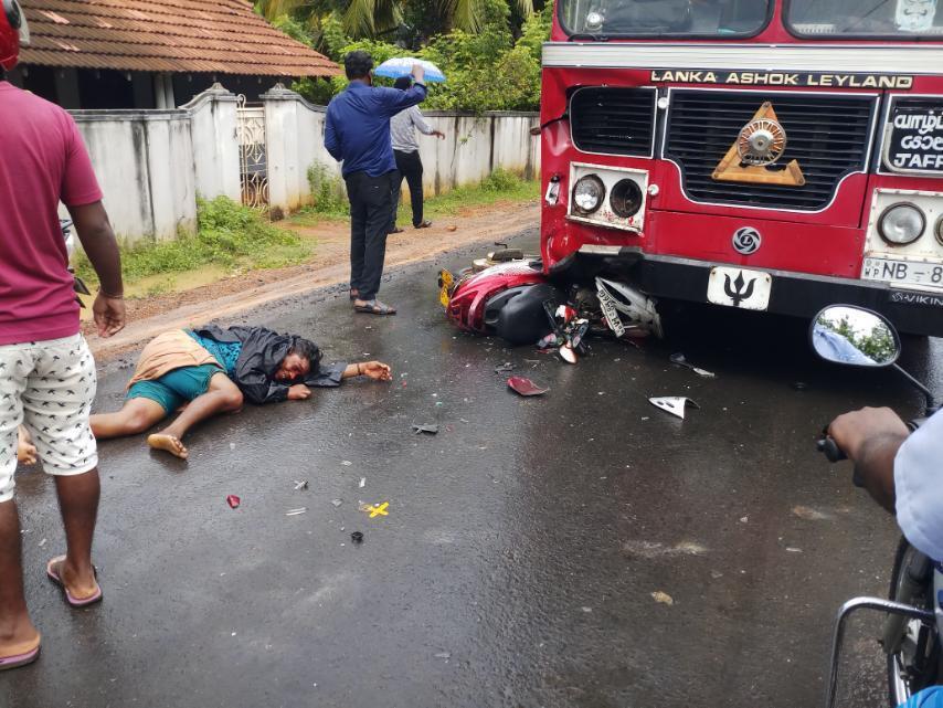 யாழ்ப்பாணம் வடமராட்சி கரணவாய் தெற்கு - மண்டான் வீதியில் இலங்கை போக்குவரத்து சபைக்கு சொந்தமான பஸ் வண்டியும் மோட்டார் சைக்கிளும் மோதி விபத்துக்குள்ளானதில் இளம்பெண் ஒருவர் படுகாயங்களுக்கு உள்ளான நிலையில் யாழ். போதனா வைத்தியசாலையில் சிகிச்சைக்காக அனுமதிக்கப்பட்டுள்ளார்.