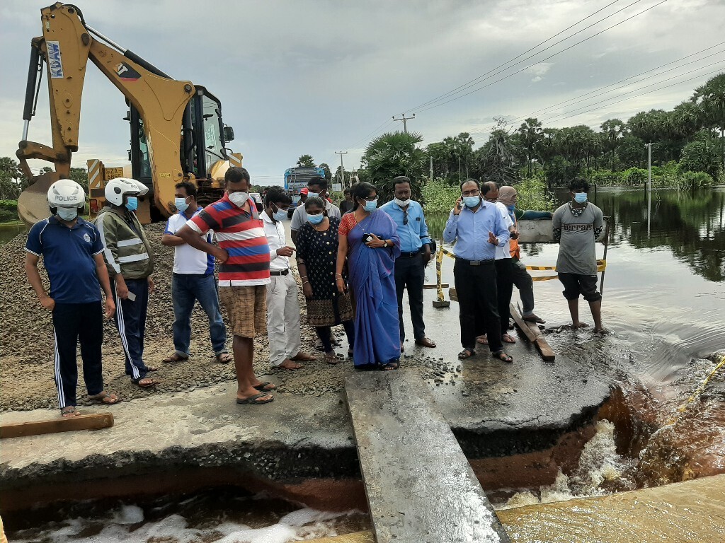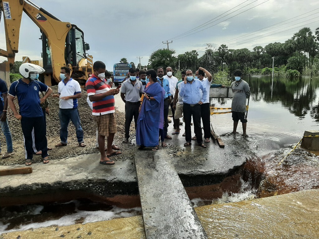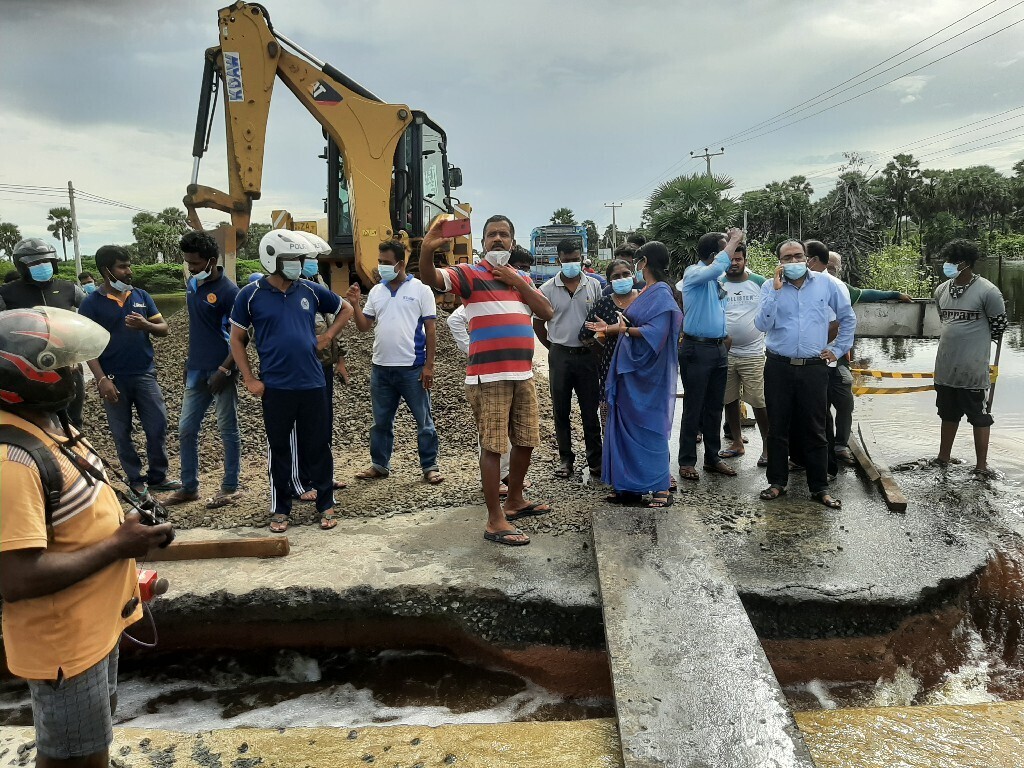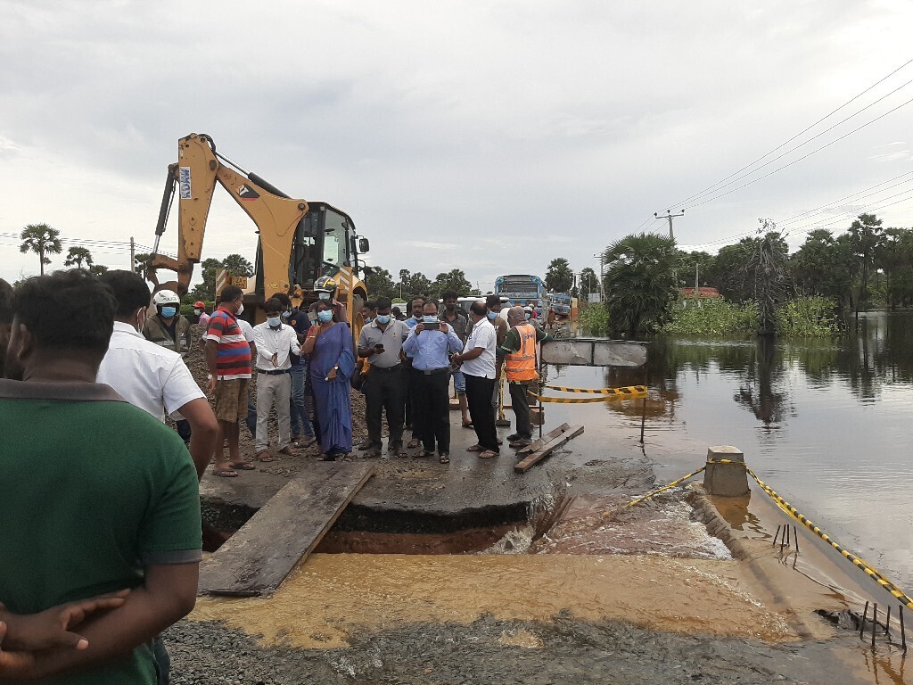 இவ்விடத்துக்கு வருகை தந்த மன்னார் அரசாங்க அதிபர் திருமதி ஸ்ரான்லி டிமெல். மன்னார் பிரதேச செயலாளர் எம்.பிரதீபன். மன்னார் அனர்த்த முகாமைத்துவ நிலைய உதவி பணிப்பாளர் திலீபன் உட்பட வீதி அபிவிருத்தி அதிகார சபை அதிகாரிகள் சம்பவ இடத்துக்குச் சென்று நிலமையை பார்வையிட்டதுடன் அரச அதிபரின் வேண்டுகோளைத் தொடர்ந்து உடனடியாக போக்குவரத்துக்கான தற்காலிக நடவடிக்கையை மேற்கொள்ளும்படி கேட்டுக்கொண்டதுக்கு அமைய தற்பொழுது இதற்கான நடவடிக்கை இடம்பெற்று வருகின்றது.